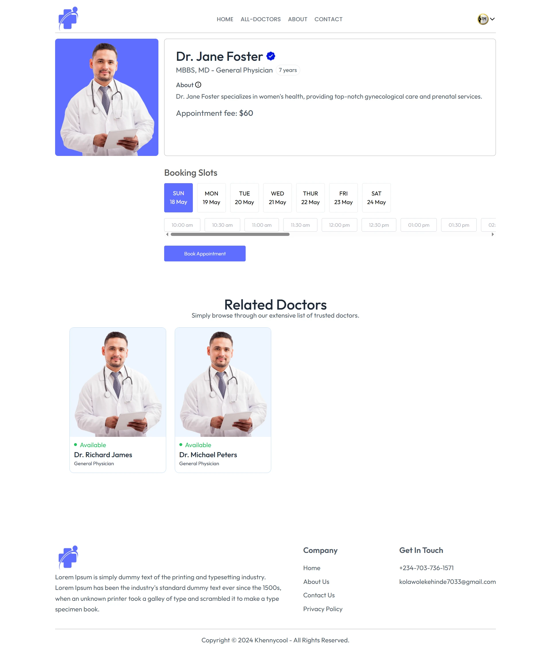 Built a responsive doctor appointment app to simplify booking, handle real-time slots, and deliver smooth UX using React, TypeScript, and Tailwind CSS.