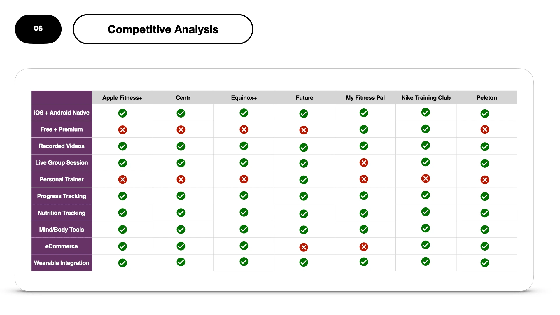 The app-based fitness market is led by established brands who dominate market share and augmented by start up brands seeking to separate themselves from the competition. Users seek intuitive, motivational fitness apps to assist with their fitness and wellness goals.