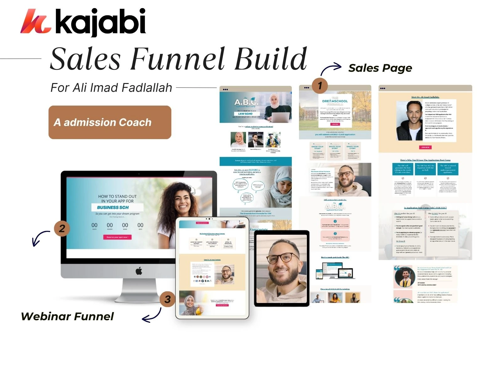 Built a full funnel setup for a college admissions coach—live & evergreen webinars, list-building, and a sales page tailored to motivated students.