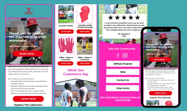 Email marketing expert, ecommerce email marketing, Klaviyo email marketing, email campaign design, welcome email flow, promotional emails, conversion rate optimization, customer retention strategy, sportswear ecommerce marketing, branded email design, email automation, product launch emails, email funnels.