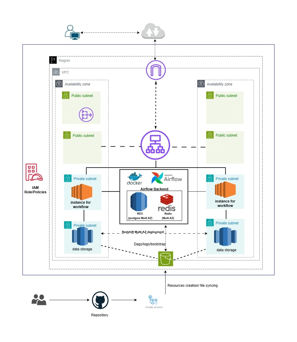 orchestration/ — Airflow DAGs and ETL codedags/ — DAG definitions (Airflow)etl/ — ETL helper scripts (book generation, upload, file-from-s3, validation)config/ — SQL helpers and shared configurationdata_validation/ — validation logic for Books and TransactionsRedshift_script/ — SQL scripts for stage & mergebootstrap_scripts/ — helper shell scripts for local install and startupterraform/ — Terraform code (split into bucket_infra/ and main_infra/)tests/ — unit and integration-style tests for DAGsorchestration/dags/ and import helper code from orchestration/etl/ and orchestration/config/.orchestration/dags/data_validation modules check schema and business rules before files are promoted to staging. Failing validations prevent downstream loads.orchestration/Redshift_script/.terraform/ are templates for provisioning S3 buckets bucket_infra/, while main_infra/ provision EC2 and other resources.bootstrap_scripts/ contains bash scripts for instance user_date to setup ec2 on instancesPosted Dec 5, 2025