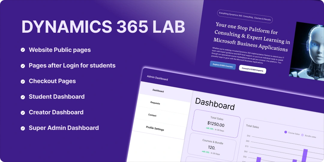 We have designed and developed the Dynamics 365 LAB Custom LMS platform with features like course creation,student management,admin dashboard,creator dashboard,