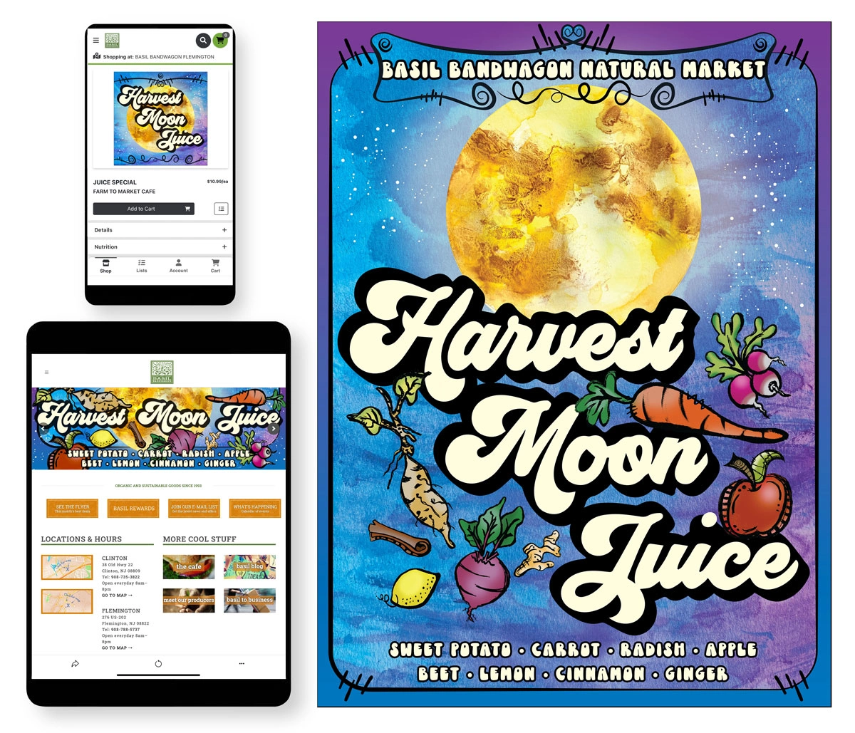 Illustrated and designed poster, web graphics, email button & Facebook cover to tell a vibrant seasonal visual story.
