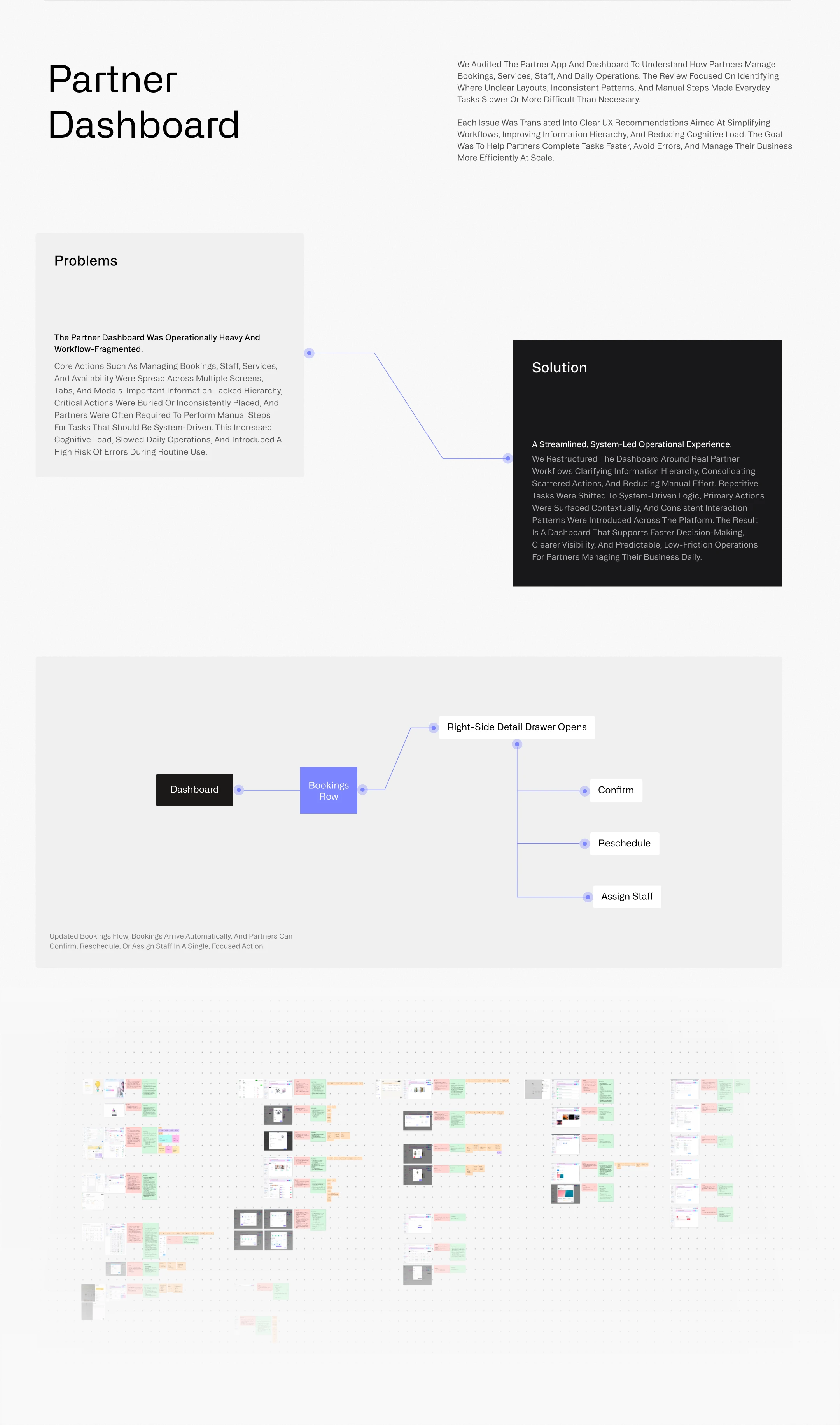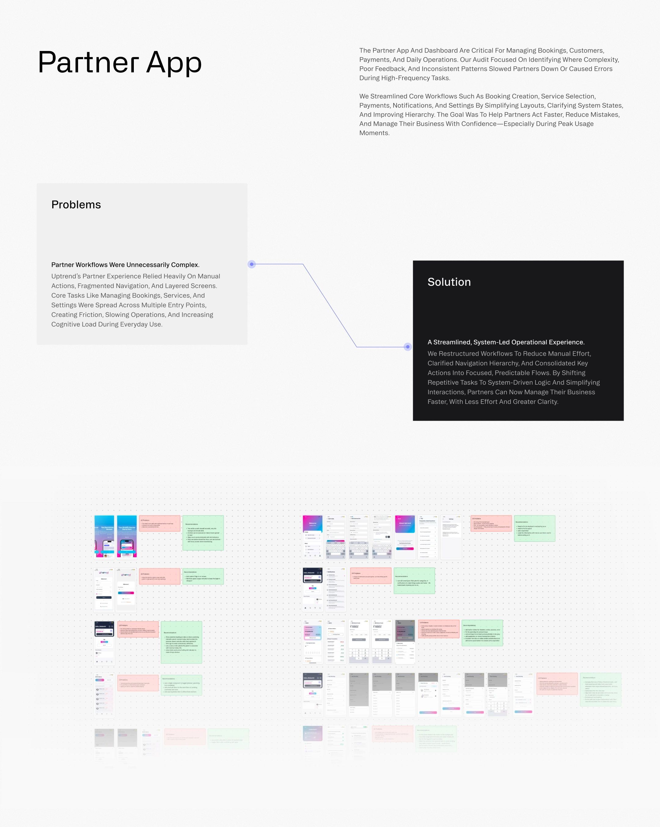 This included audit reports on both consumers’ and partners’ touchpoints, identifying friction in navigation, prioritization of actions, feedback gaps, and visual inconsistency.