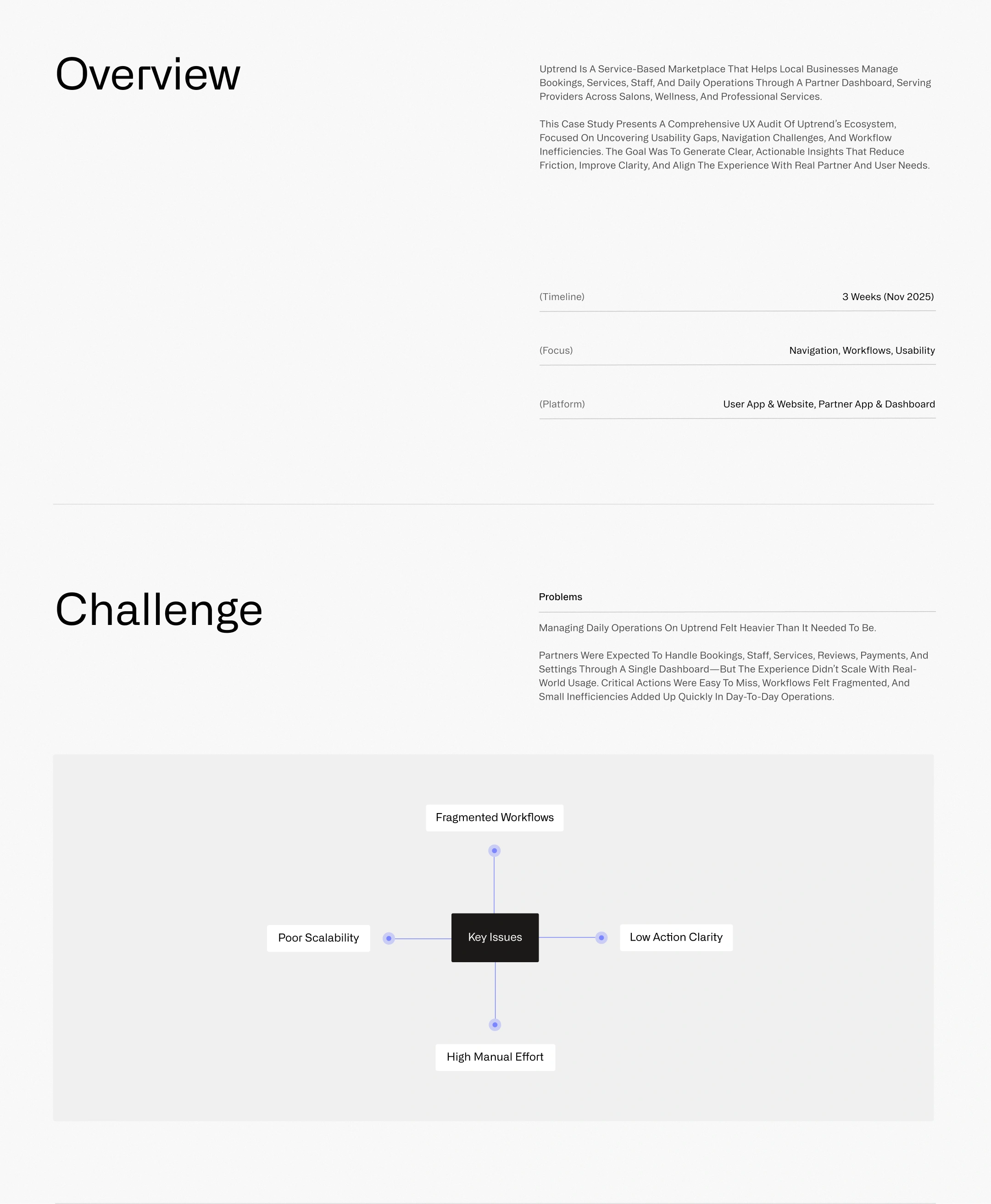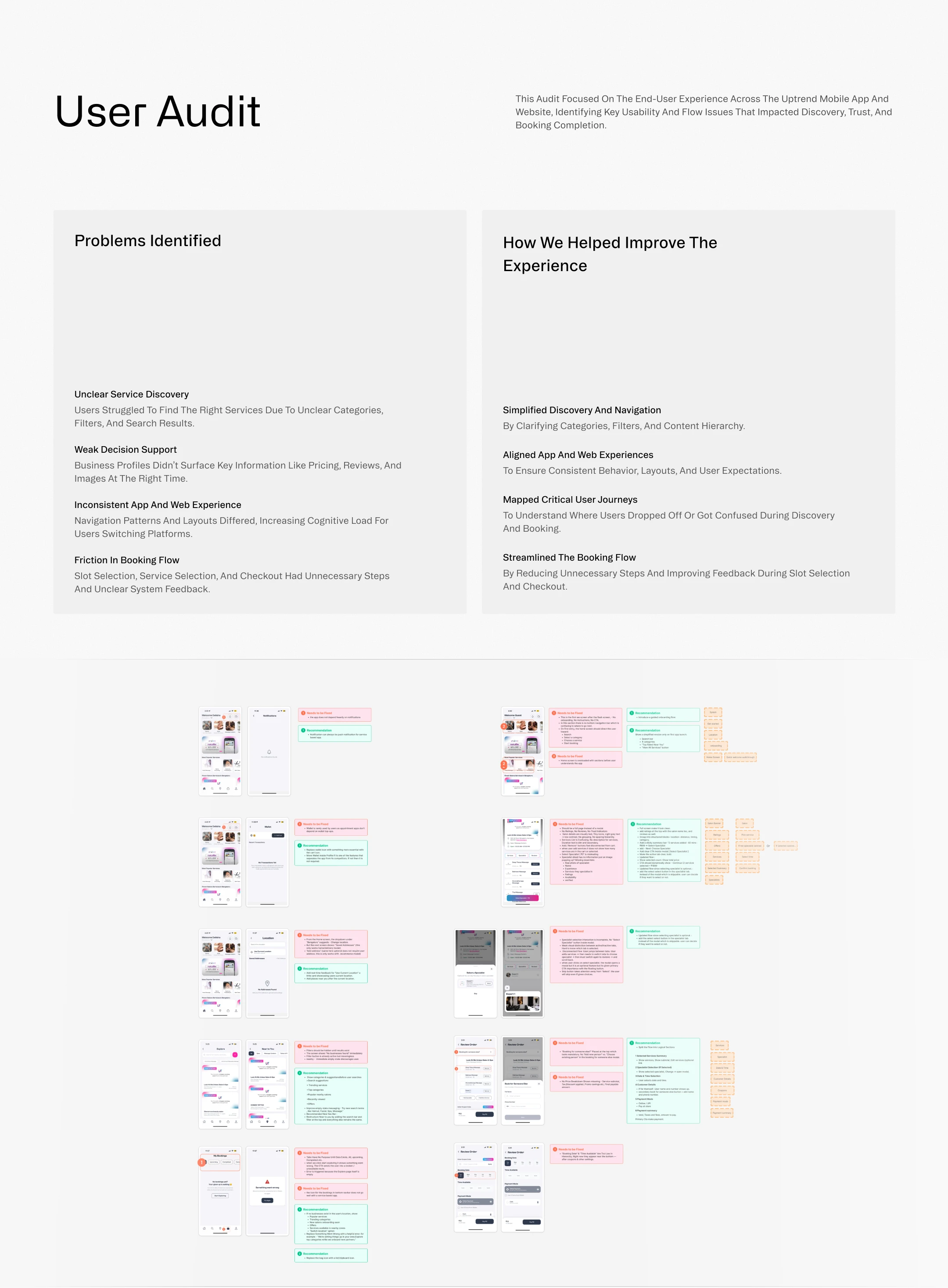 Conducted a full UX audit of Uptrend’s consumer & partner apps, dashboards, and websites, then scoped a unified redesign + bonus founder site UX review.
