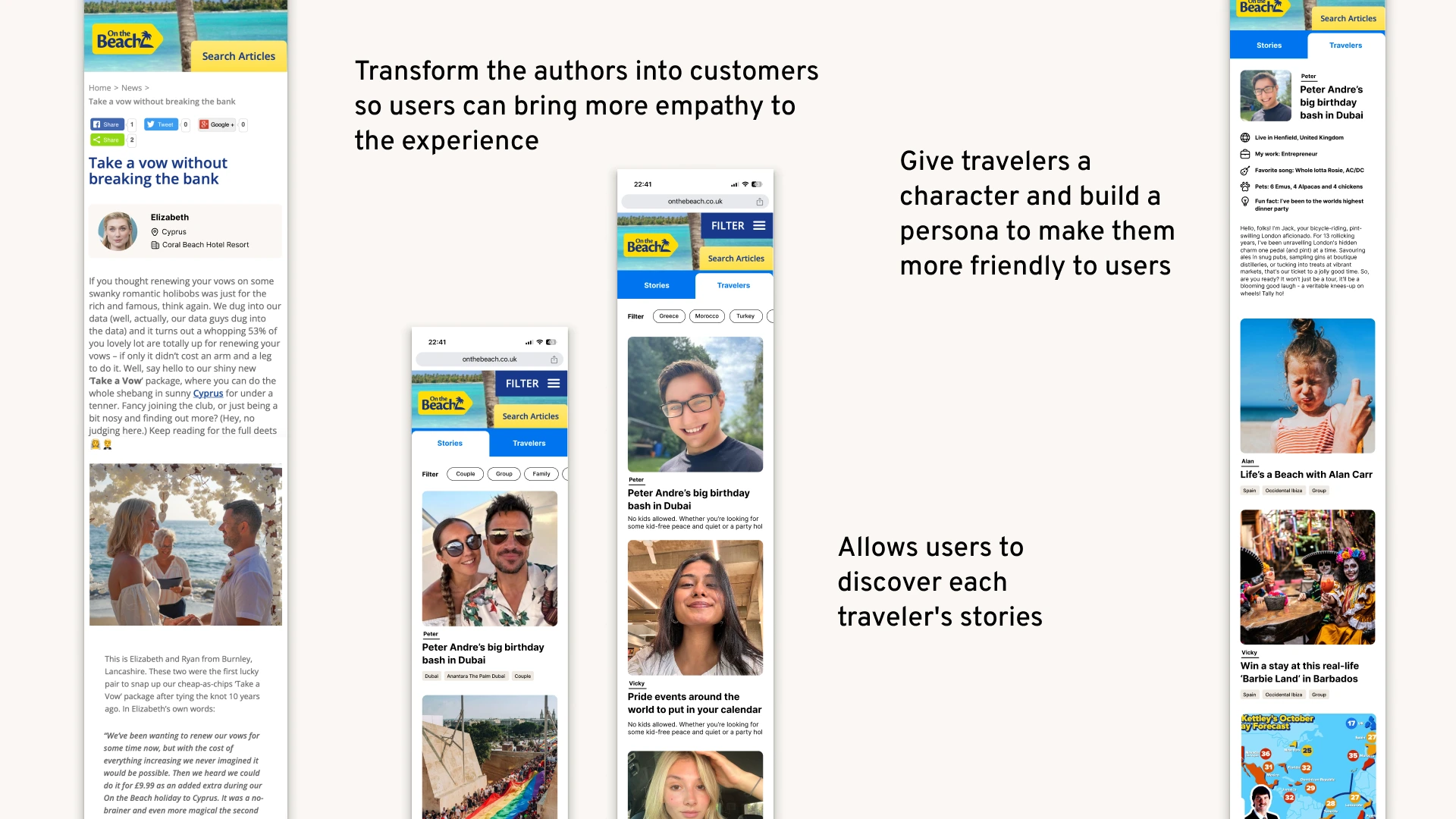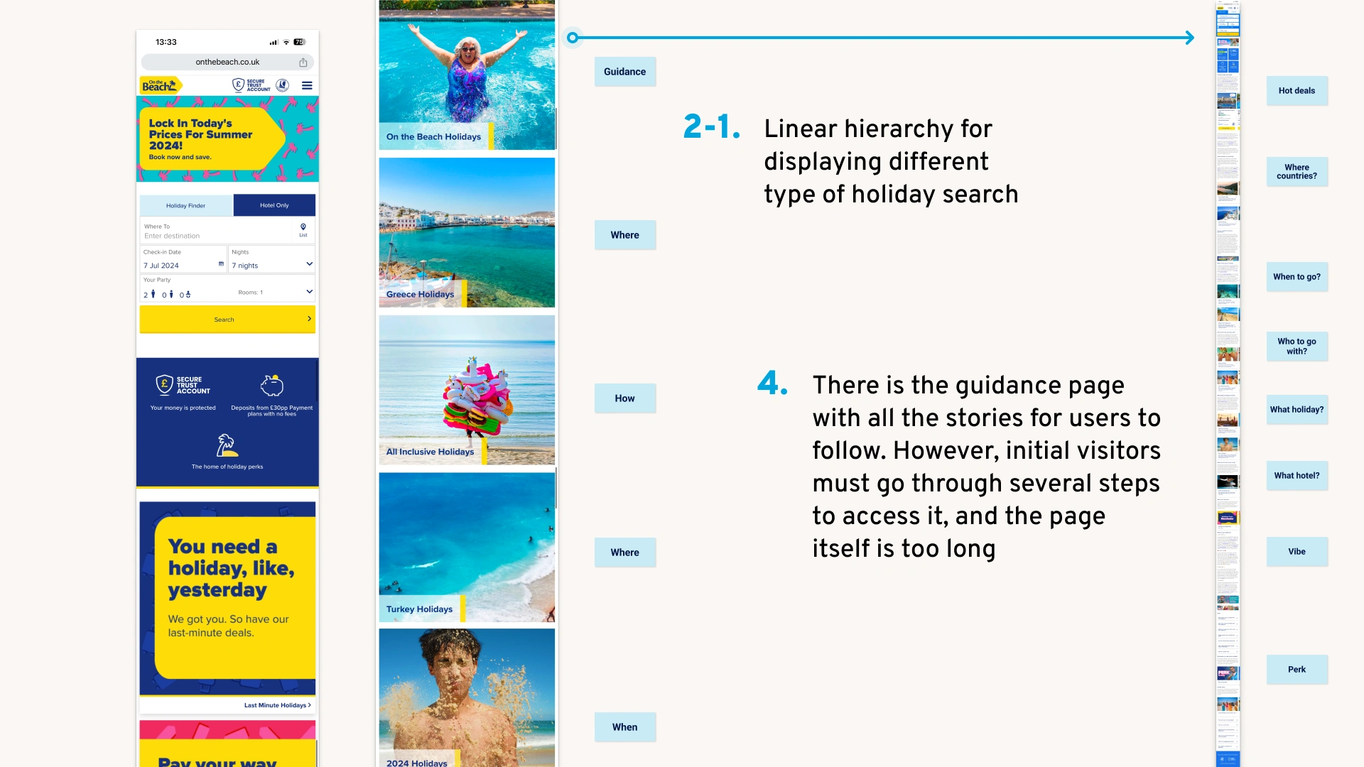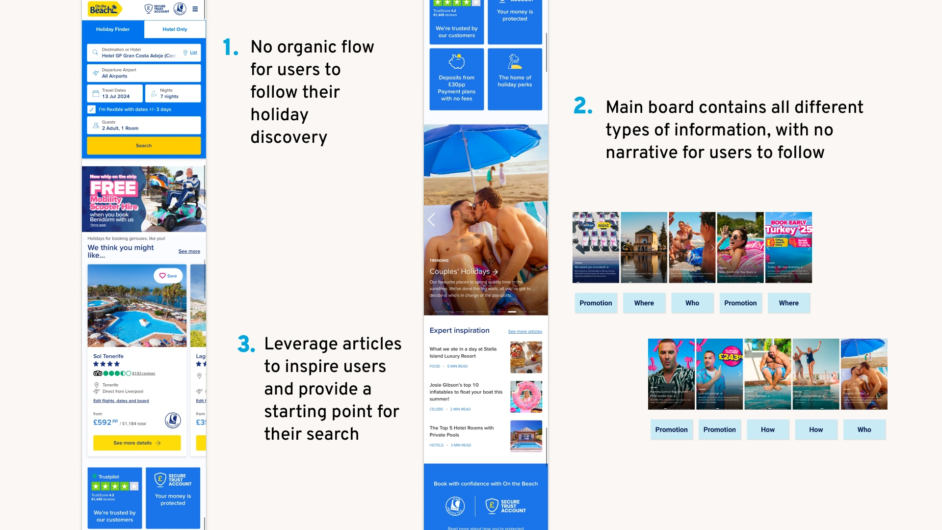 Redesigned 'On the Beach' landing page to solve cluttered information and poor user flow. Users struggled to find key info quickly.