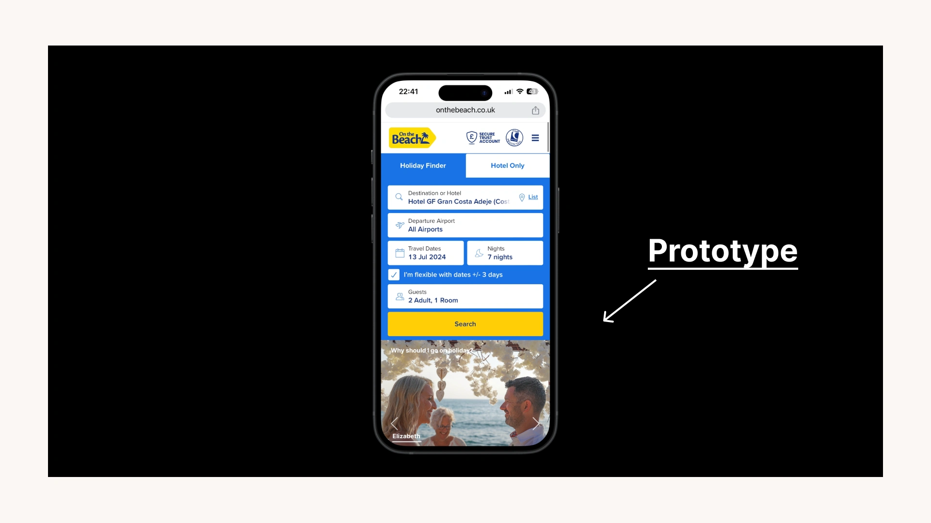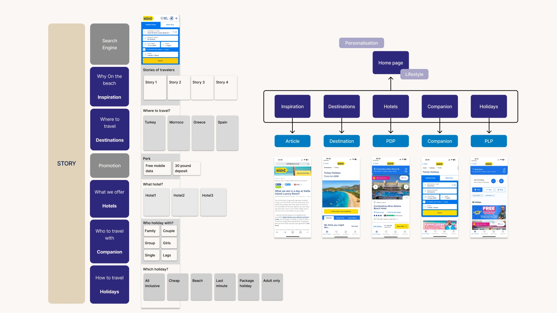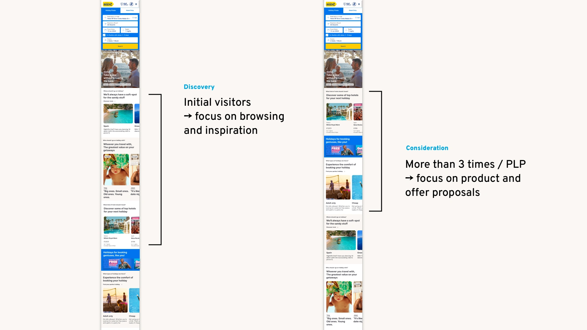 Personalized content by user stage: exploration for first-timers, promotions for repeat visitors. Added traveler stories for emotional connection. Prototyped intuitive 'Holiday Finder' with flexible dates and group settings.