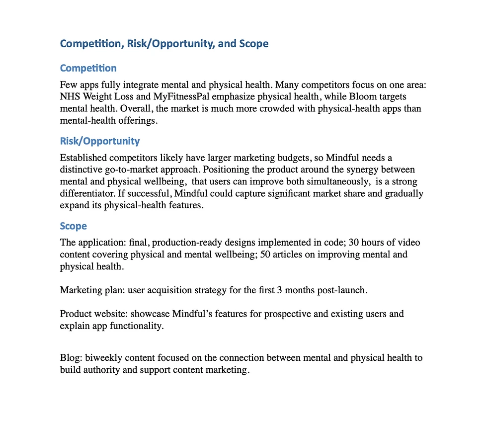 Users of the health app Mindful need a simple, private way to track and improve their mental health while coping with workplace stress. We will consider this successful if average daily mood scores increase after regular use of the app's mood check-in.