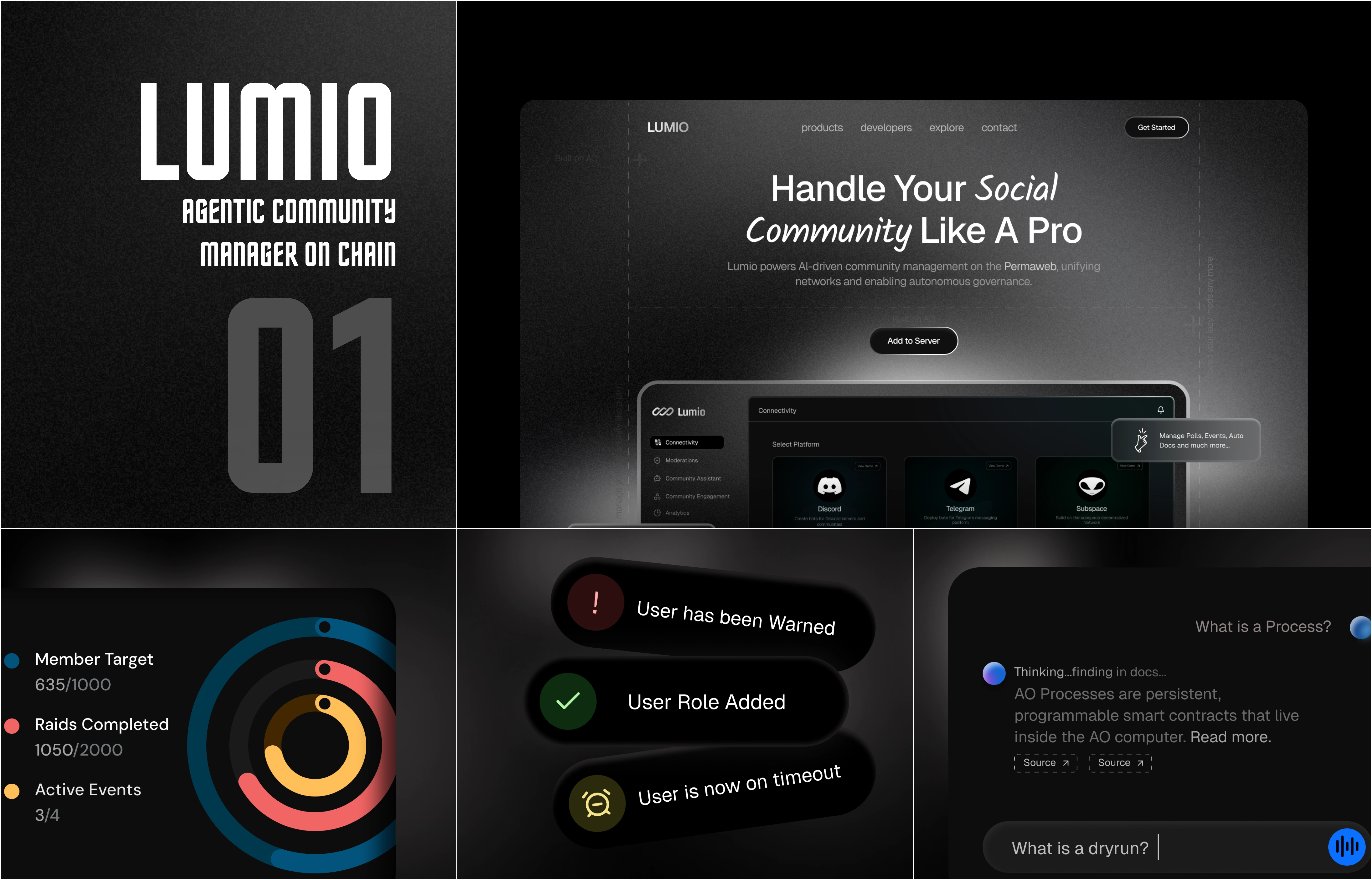 Lumio was no doubt a very impressive project idea. To have an AI replacing the job of moderation, event management, and other polls for you is the next best thing one could wish for after creating a community. But their previous website design was felling short to the expectations. The vision were bold but the visuals were not speaking well. They were in need for a website that aligns well with the web3 aesthetics and would be ready to impress the investors first hand.