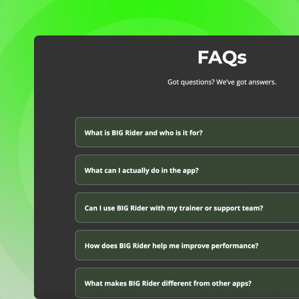 BIG Rider needed a clean, clear website to explain their product and support an upcoming launch. The goal was to show off the brand and value prop in a way that worked for both new users and sponsors.