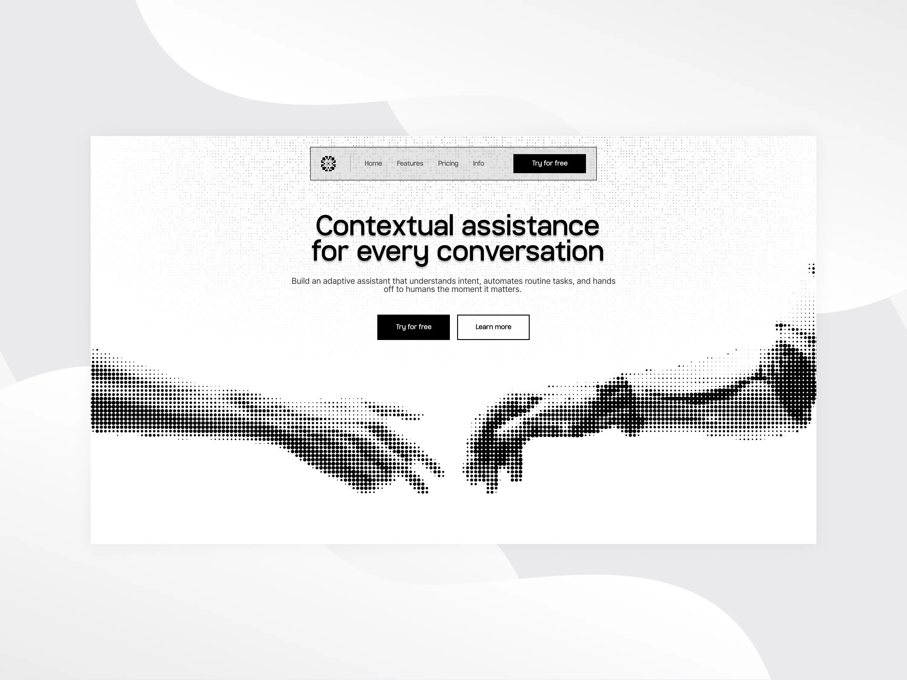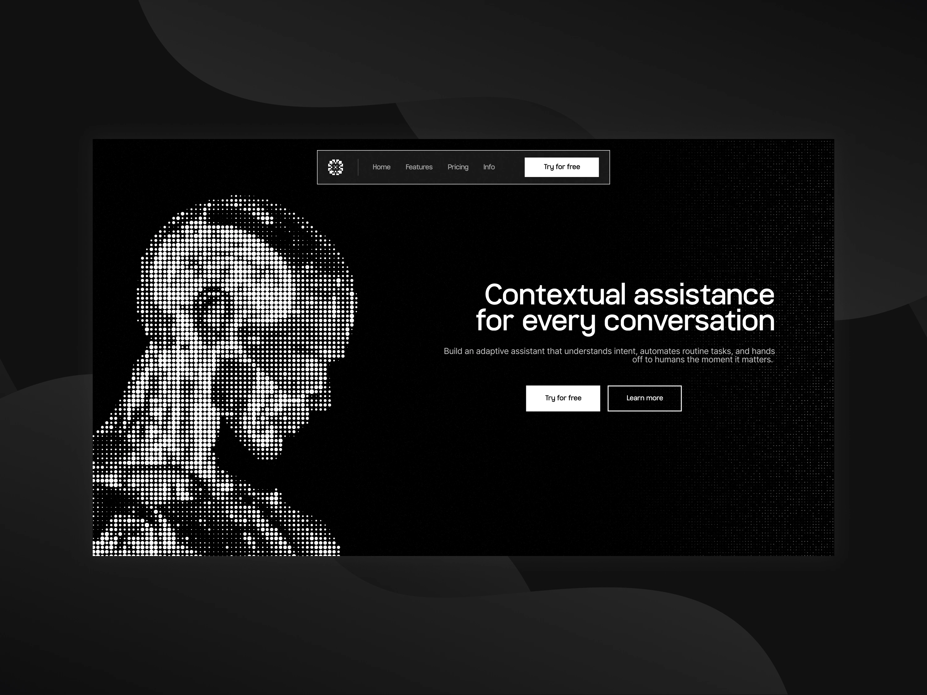 I designed and branded a hero section for an AI agent platform that delivers a memorable, tech‑forward first impression. The experience pairs dark and light modes with intuitive navigation and dual CTAs that streamline trials and learning. A dotted halftone visual language, crisp typography, and high‑contrast buttons reinforce innovation and clarity. Content is framed to spotlight value, capabilities, and handoff workflows. The result is a cohesive, accessible, and conversion‑ready entry point that sets the product apart.