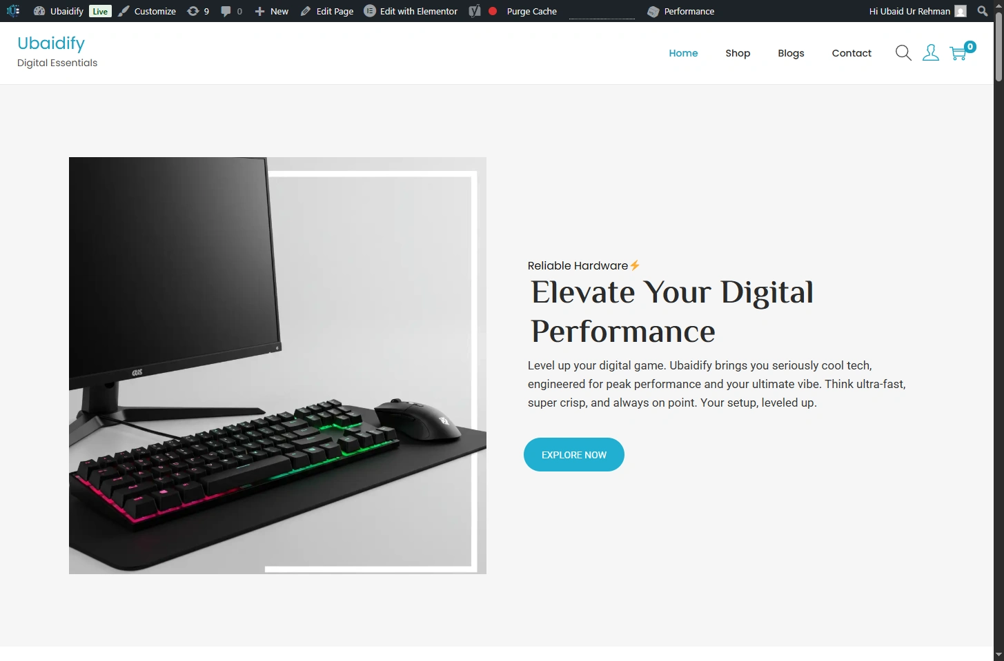 A modern, fully responsive tech store built with WordPress and Elementor. Features include product listings, category filters, cart integration, and sleek UI — designed to showcase eCommerce skills and conversion-focused design.