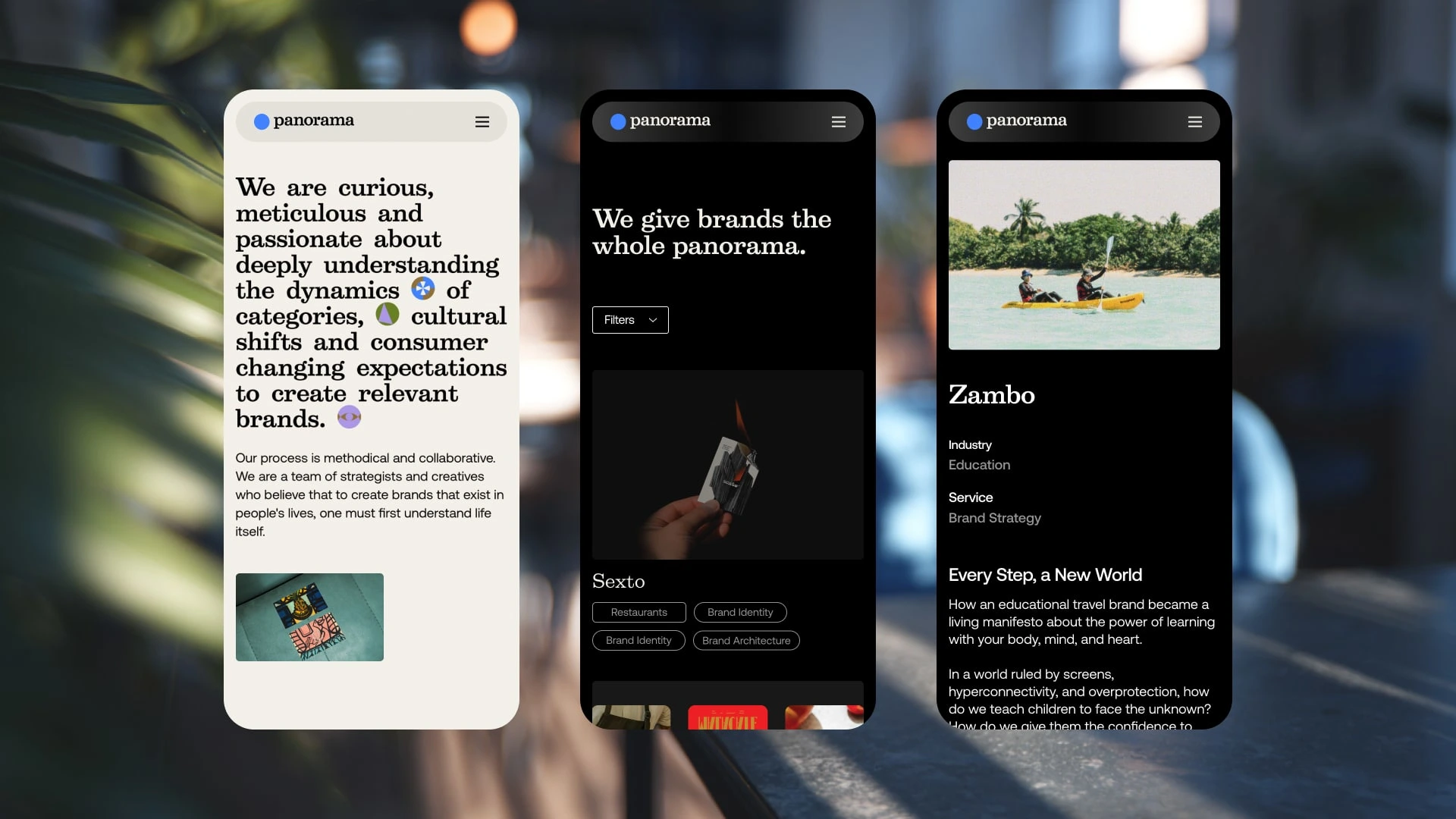 Created a custom Webflow website for Panorama, a branding consultancy building meaningful brands that live in people's hearts, minds, and daily lives. Challenge: communicate their philosophy of crafting unforgettable brands that transcend viral trends to become truly loved. The custom platform showcases exceptional portfolio work, emphasizing tangible brand transformation results. Visual storytelling highlights their unique differentiators and methodology throughout the site.