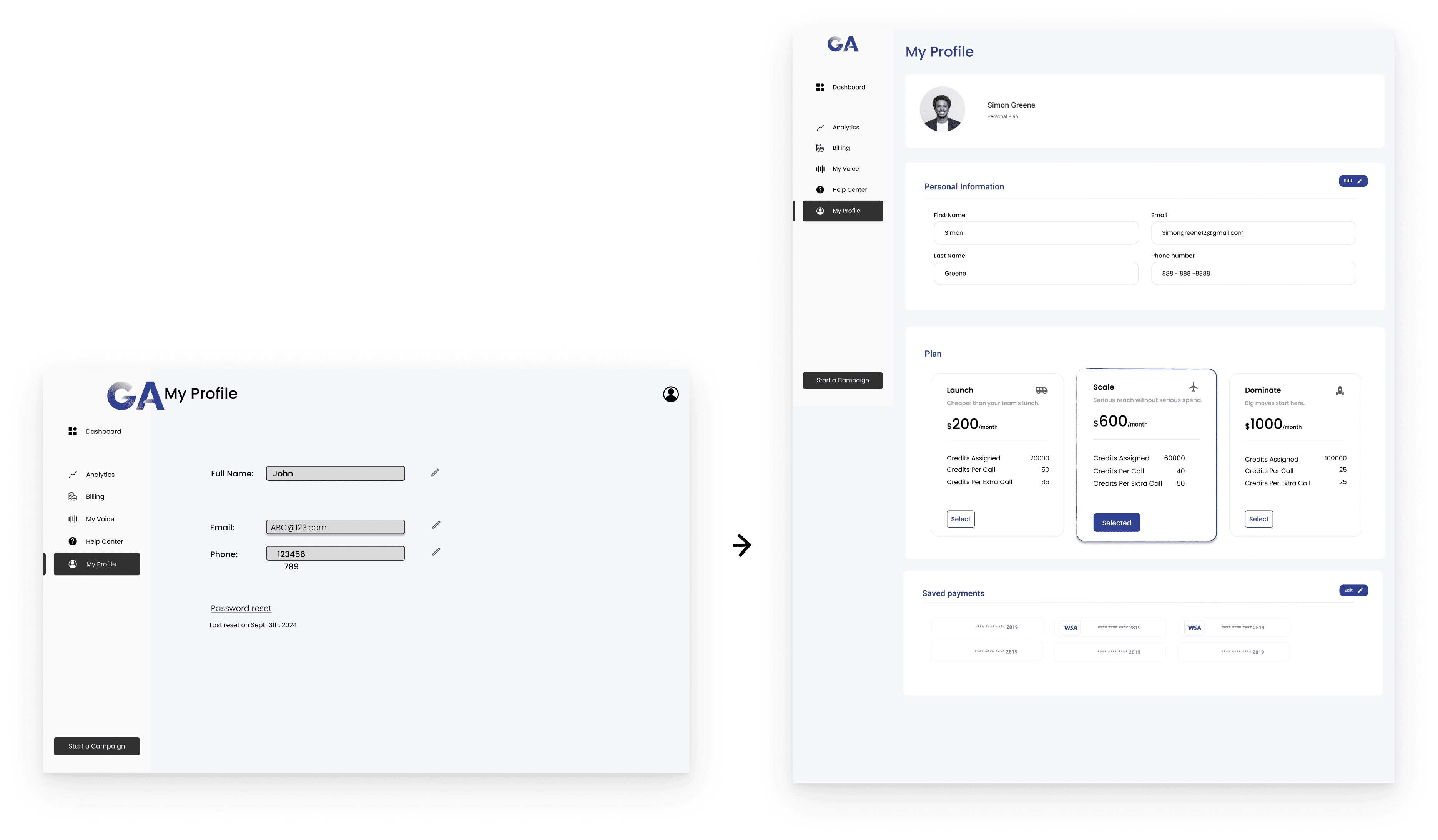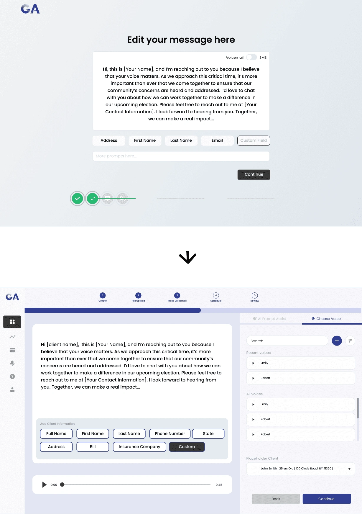 This project followed an iterative, feedback-driven design process focused on clarifying complex AI workflows while maintaining speed and feasibility within a startup environment. We began by auditing existing flows, identifying user pain points, and mapping the end-to-end user journey across both product and marketing surfaces. From there, I created low-fidelity wireframes to explore structure and flow, iterated through mid-fidelity prototypes based on internal feedback, and finalized high-fidelity designs aligned with brand and engineering constraints.