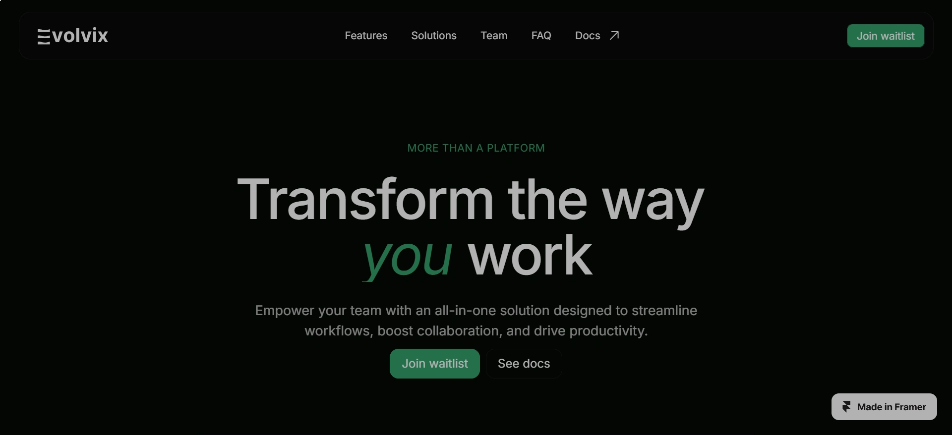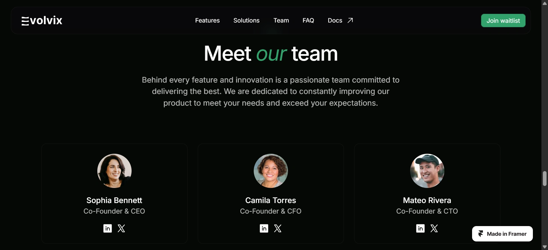 I built the Evolvix marketing website using Framer, focusing on clarity, speed, and a modern visual experience. The goal was to translate the brand’s identity into a clean, high-impact website that feels polished and easy to navigate across devices.