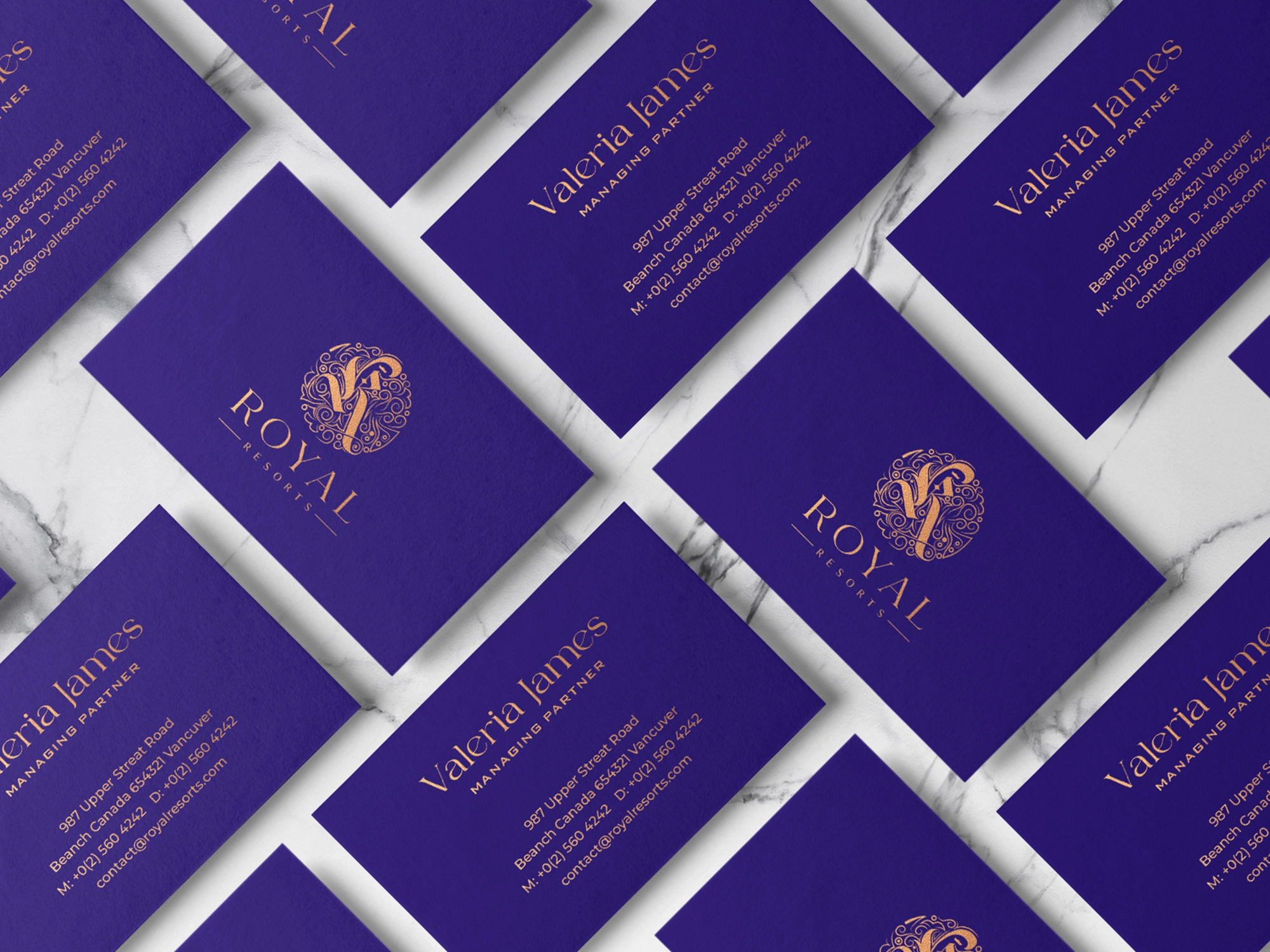 Royal Resort is a clean, sophisticated brand redesign featuring visual identity & logotype work that evokes luxury and calm in a resort setting.