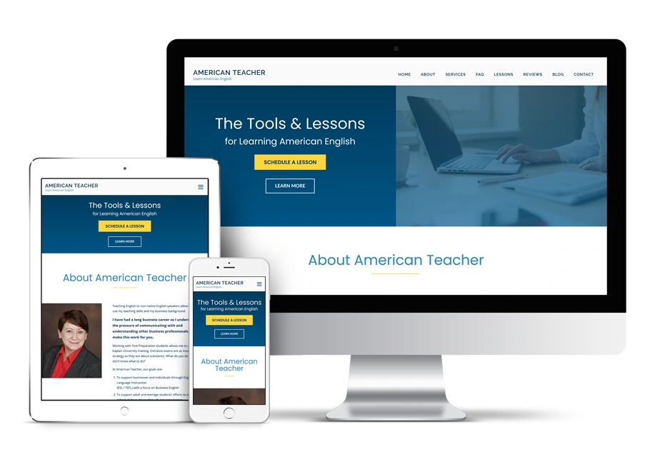 A modern website for American Teacher was created to facilitate lesson scheduling, newsletter sign-ups, and blog access, enhancing student interaction.