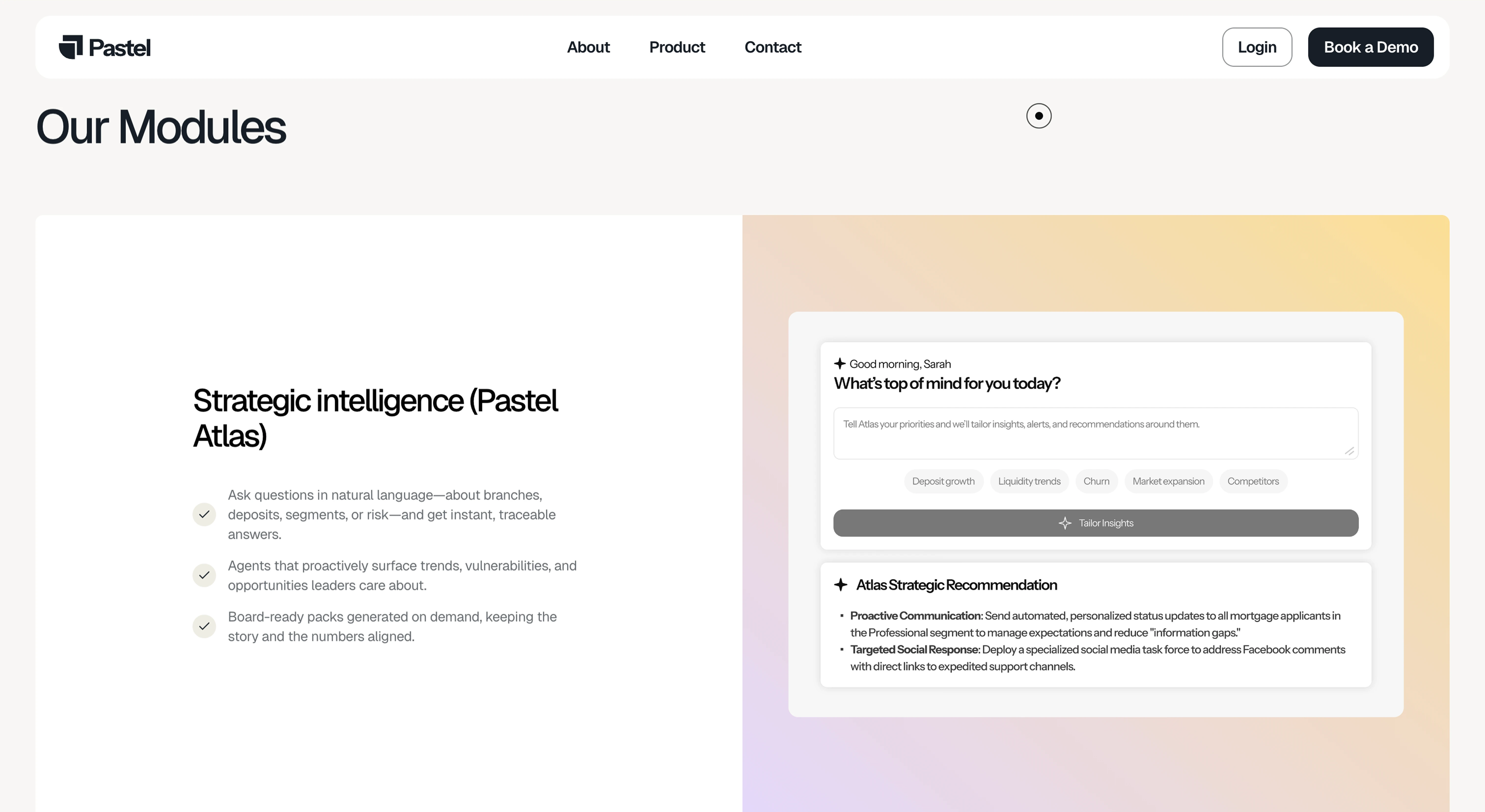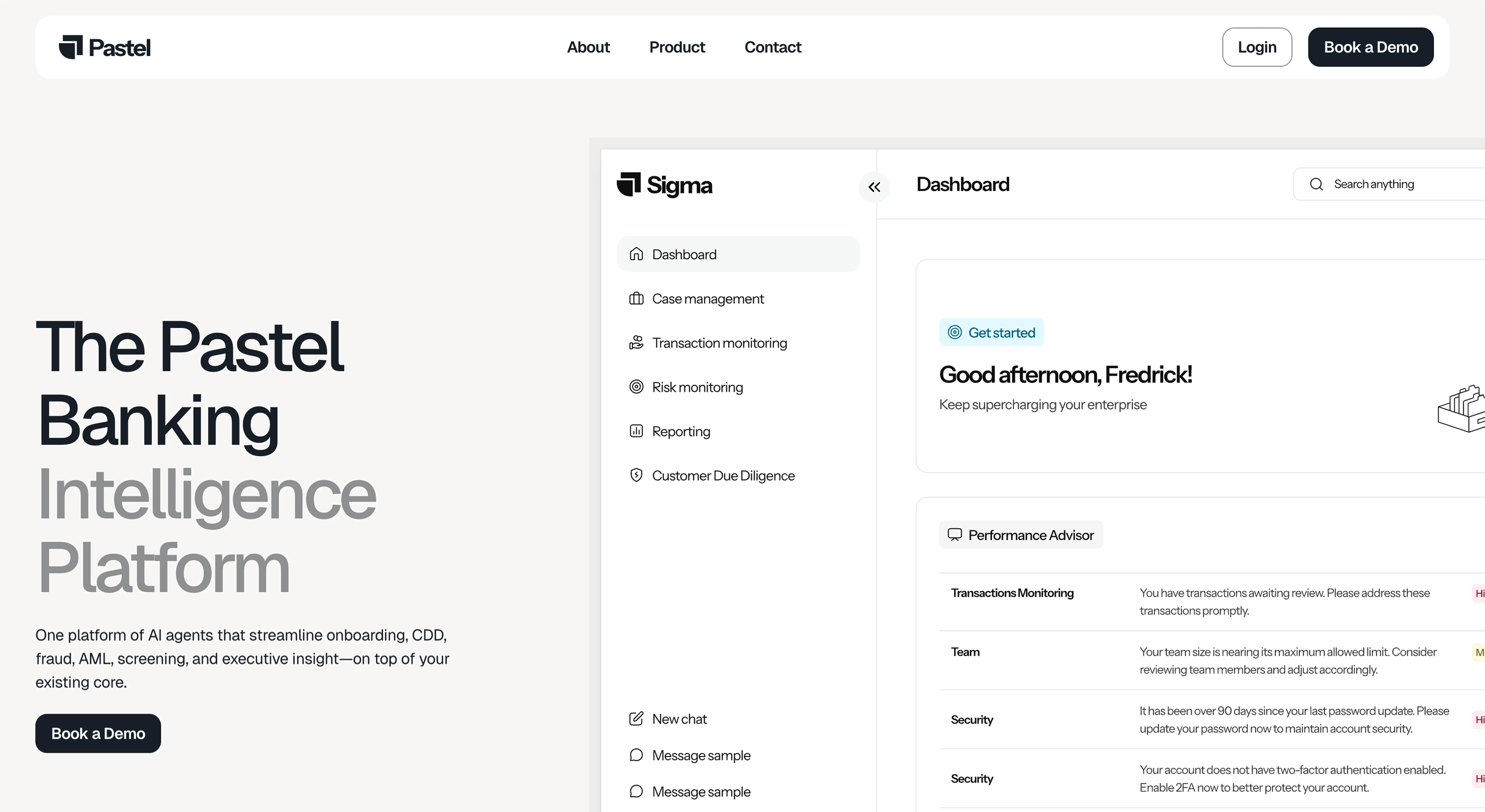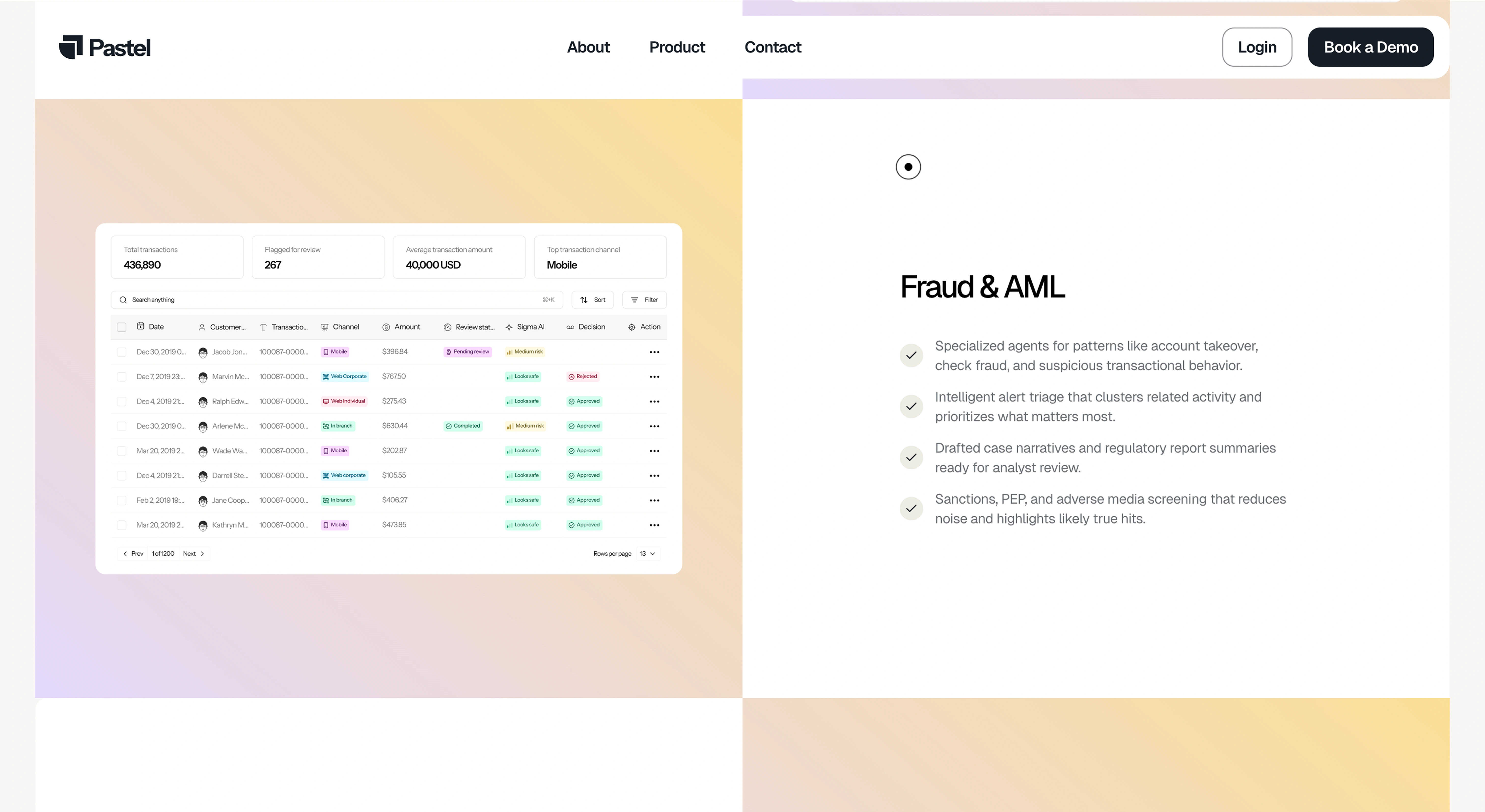 Overview: Pastel is an agentic AI platform that automates core banking operations, including onboarding, fraud detection, and compliance. By handling repetitive, manual tasks within human-defined rules, Pastel ensures every action is fully explained and transparent.