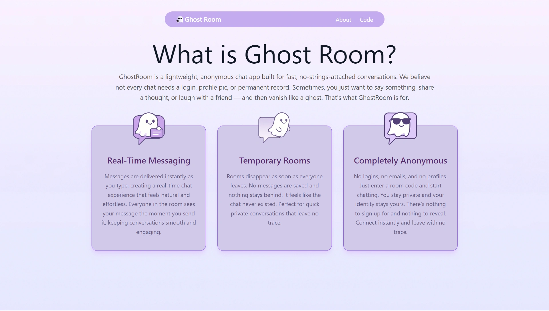 "Connect with others in real-time, anywhere, anytime." GhostRoom is a web-based real-time chat application that enables users to create temporary rooms for instant messaging. With Ghost Room, users can connect with others in real-time, share thoughts, ideas, and conversations, and enjoy seamless communication.