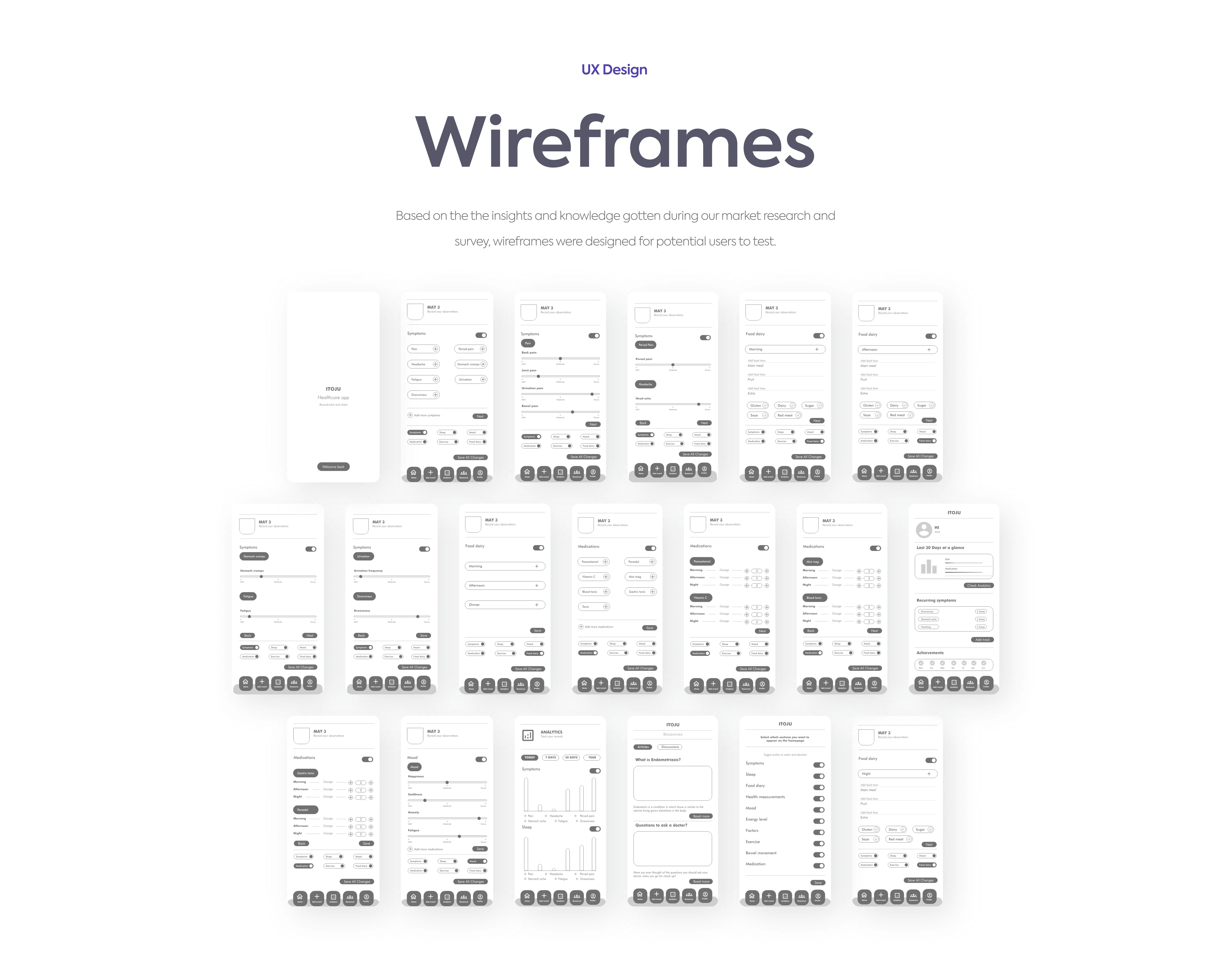 ITOJU Healthcare app was designed to help women manage their health by tracking daily activities, managing wellness goals, and inspiring a healthier lifestyle.