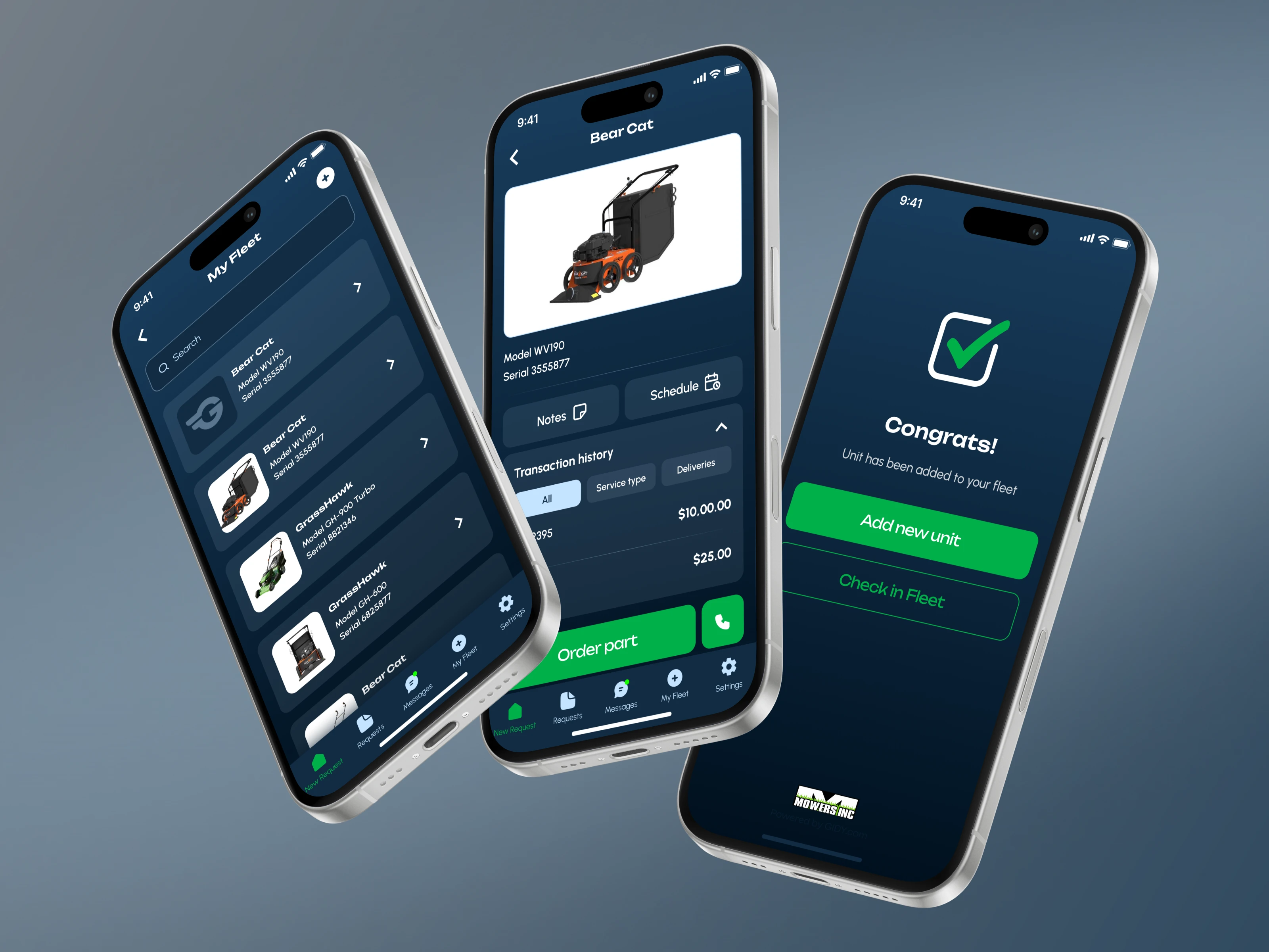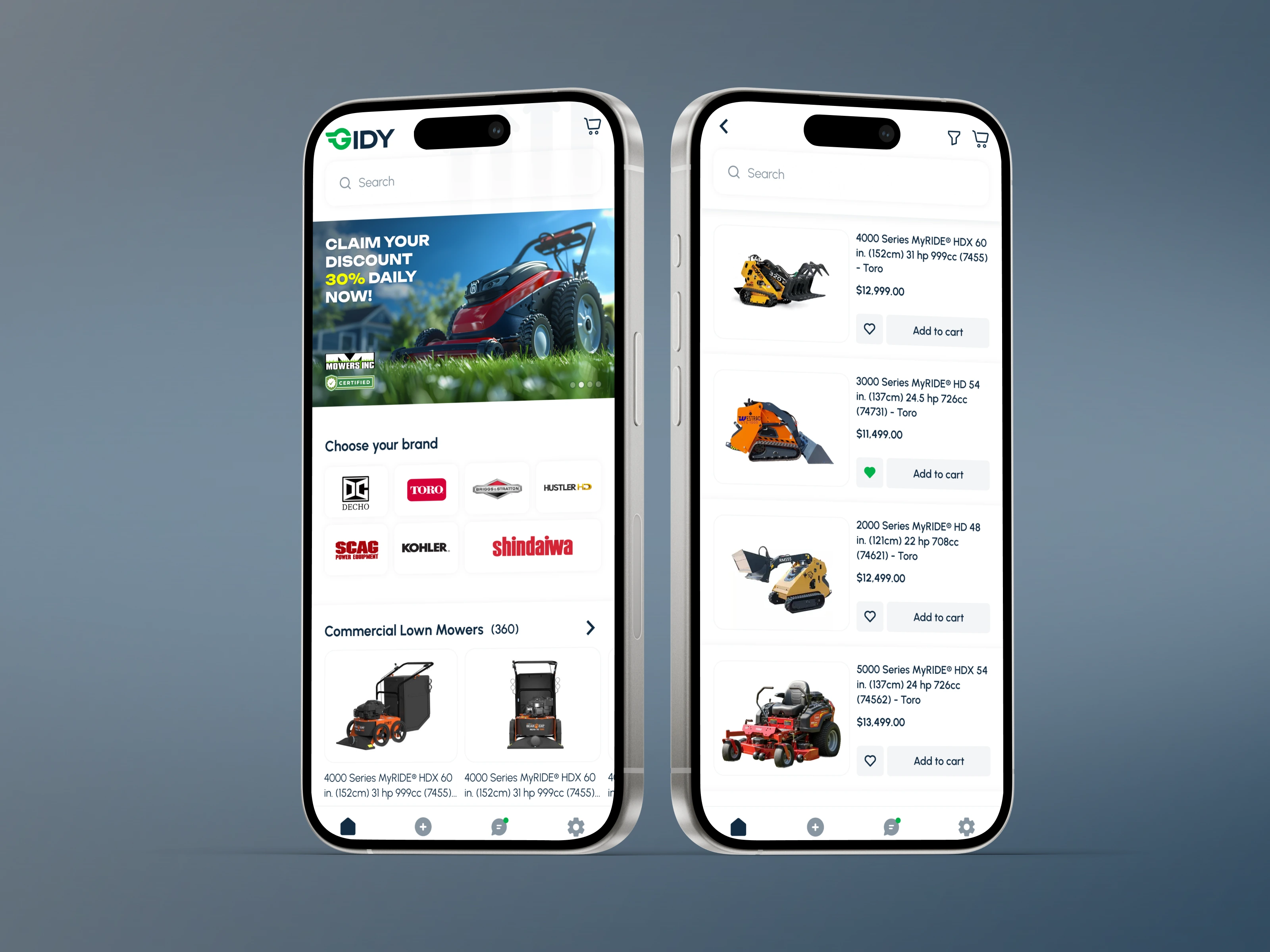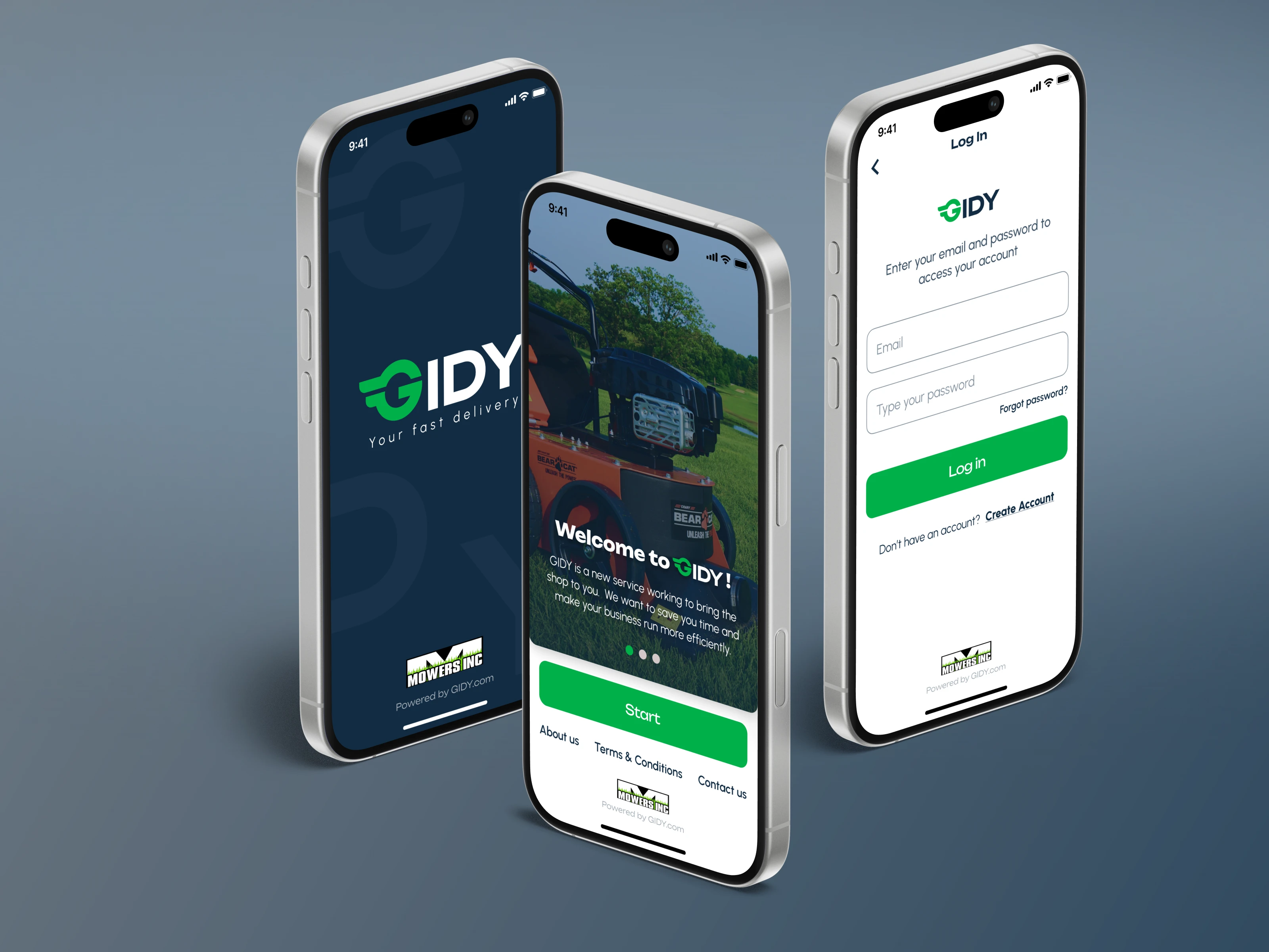 GIDY is a smart mobile app for Outdoor Power Equipment teams. It streamlines fleet tracking, parts ordering, and delivery in one place — designed for speed, clarity, and field-ready usability.