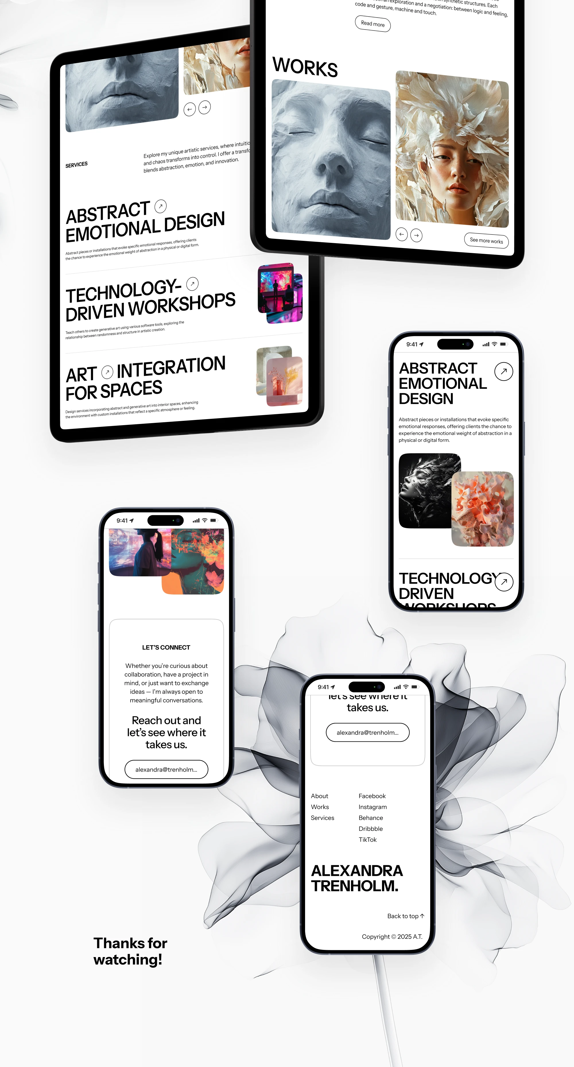 A portfolio site for a multidisciplinary artist working across digital, physical, and generative mediums.
