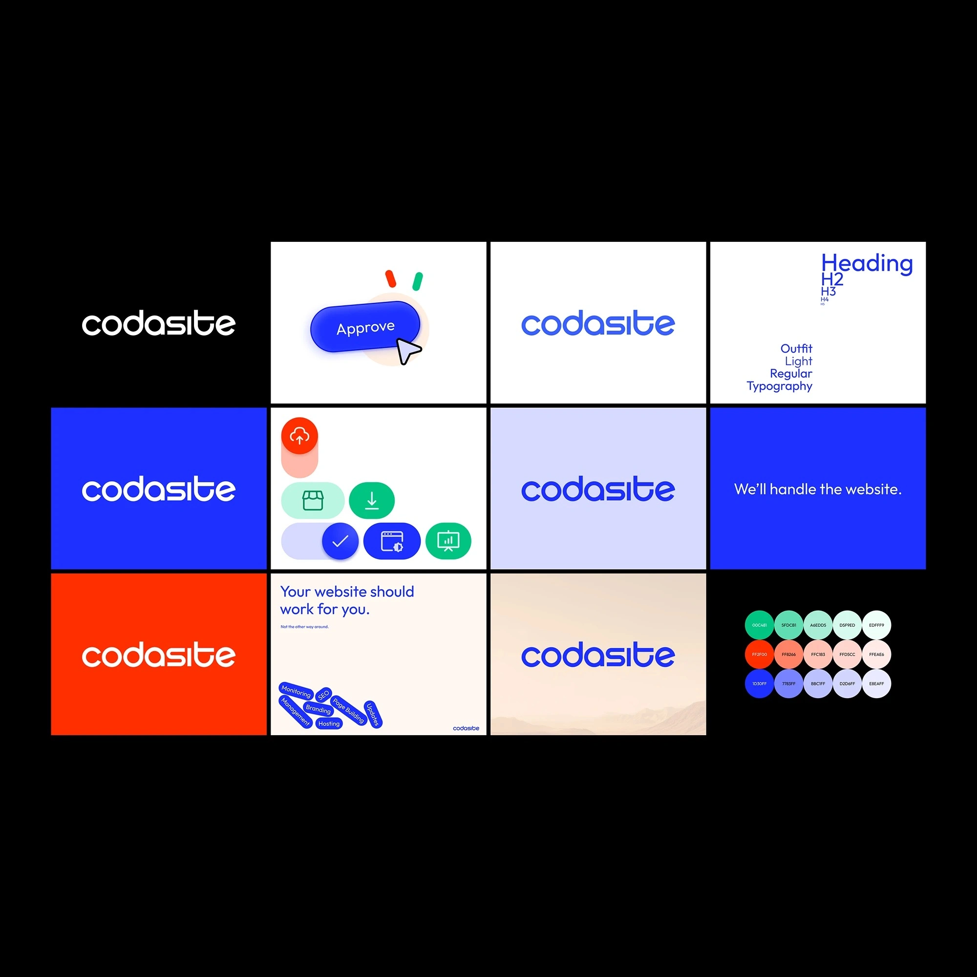 The process of designing Codasite's new brand was a months-long effort. My mission was to create a subtle but memorable logotype and color palette.
