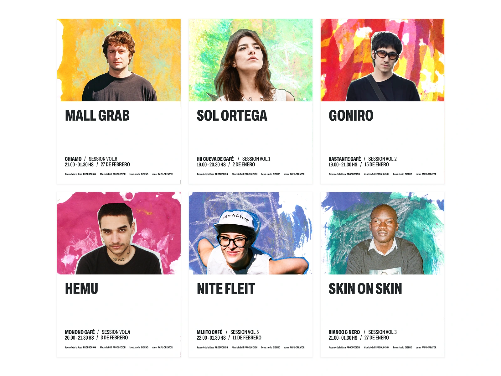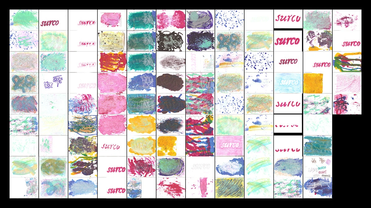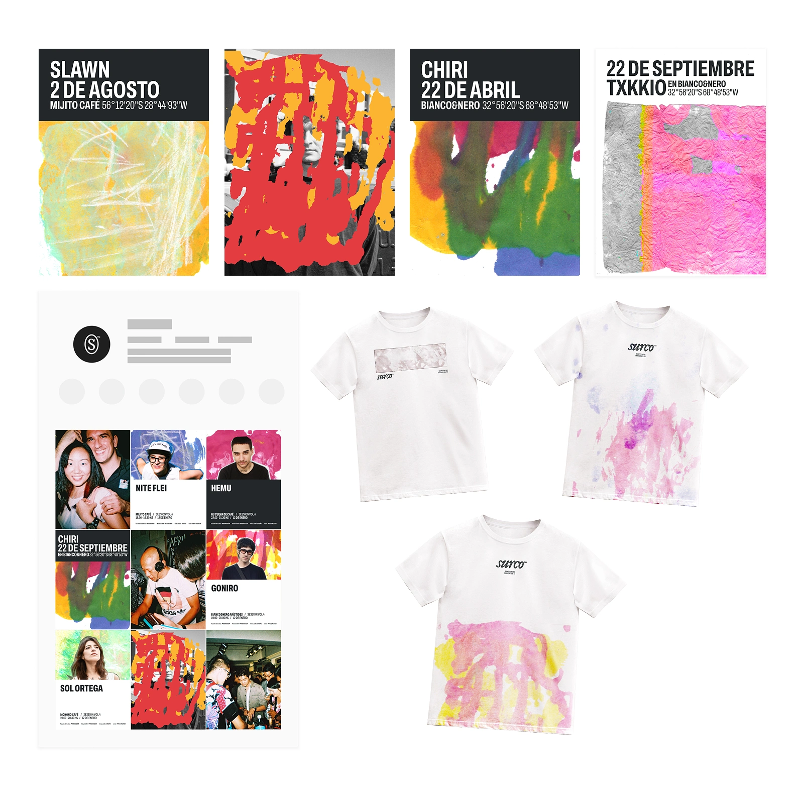 The system breaks a fundamental convention of graphic design: the absence of a coded color palette. The only solid (hexadecimal) colors are white and grey, serving as a neutral support. All remaining color is not flat ink, but matter; it comes exclusively from the painterly textures, making exact repetition impossible and giving the brand an unusual organic vitality.