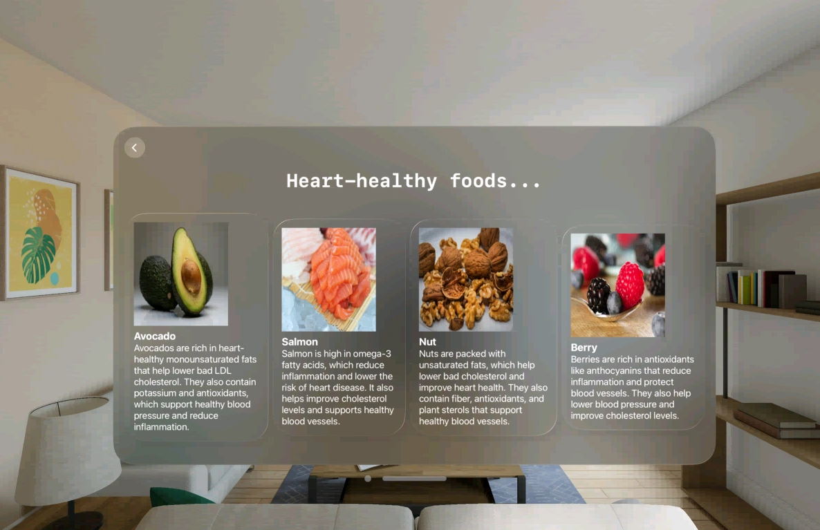 Explore heart health in Apple Vision Pro! Learn about heart-healthy foods, discover exercises, and interact with immersive VR/AR heart models! ❤️🫀