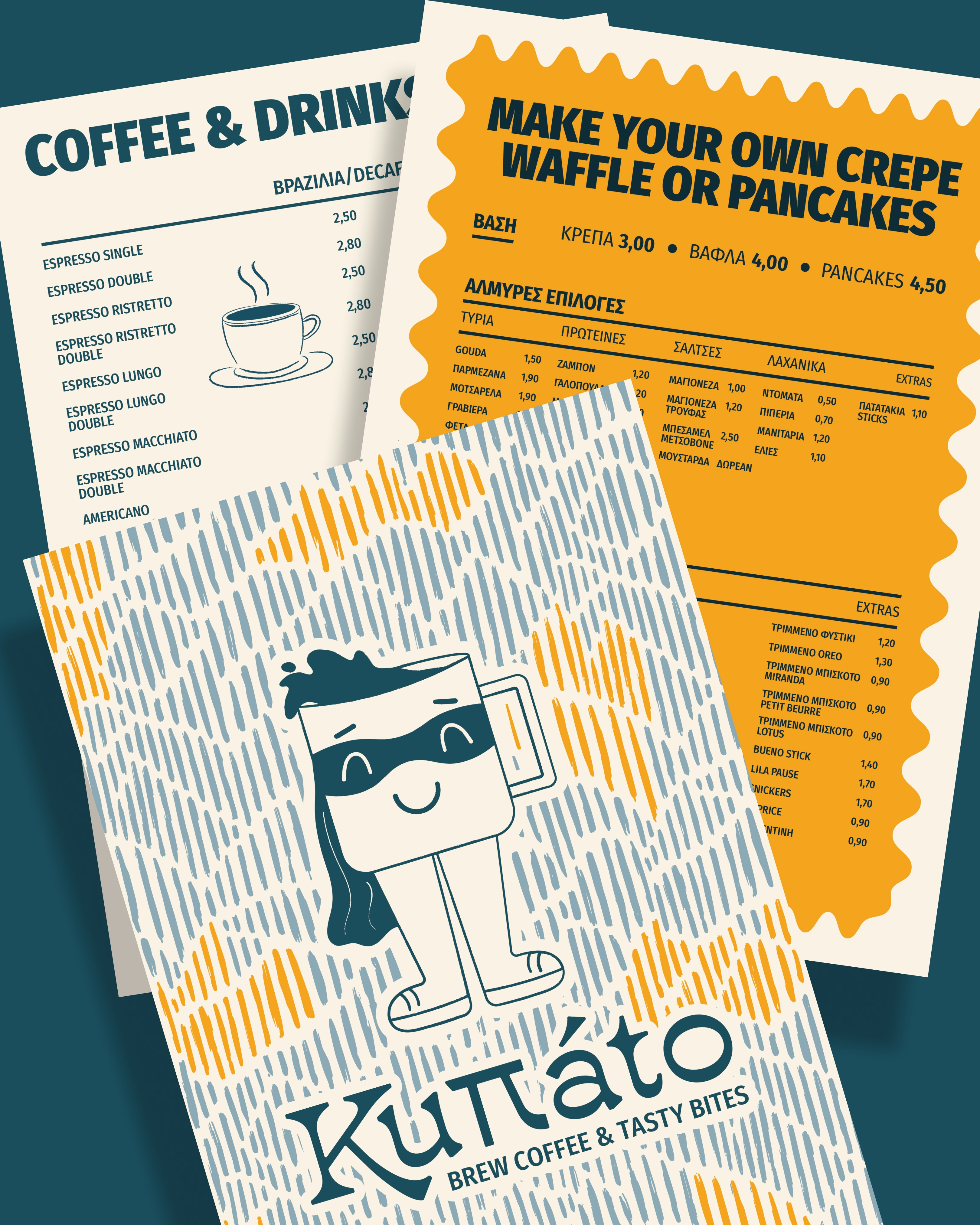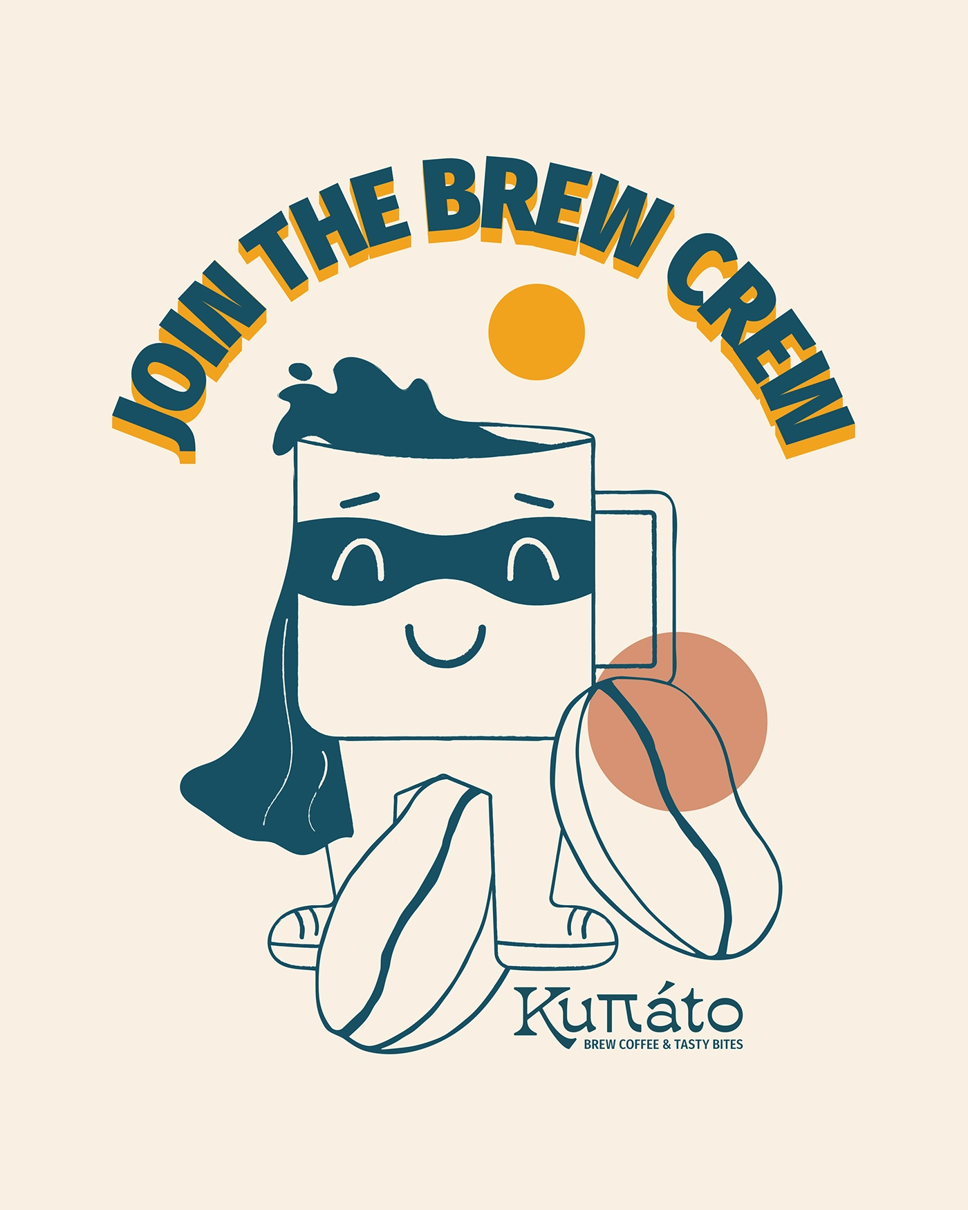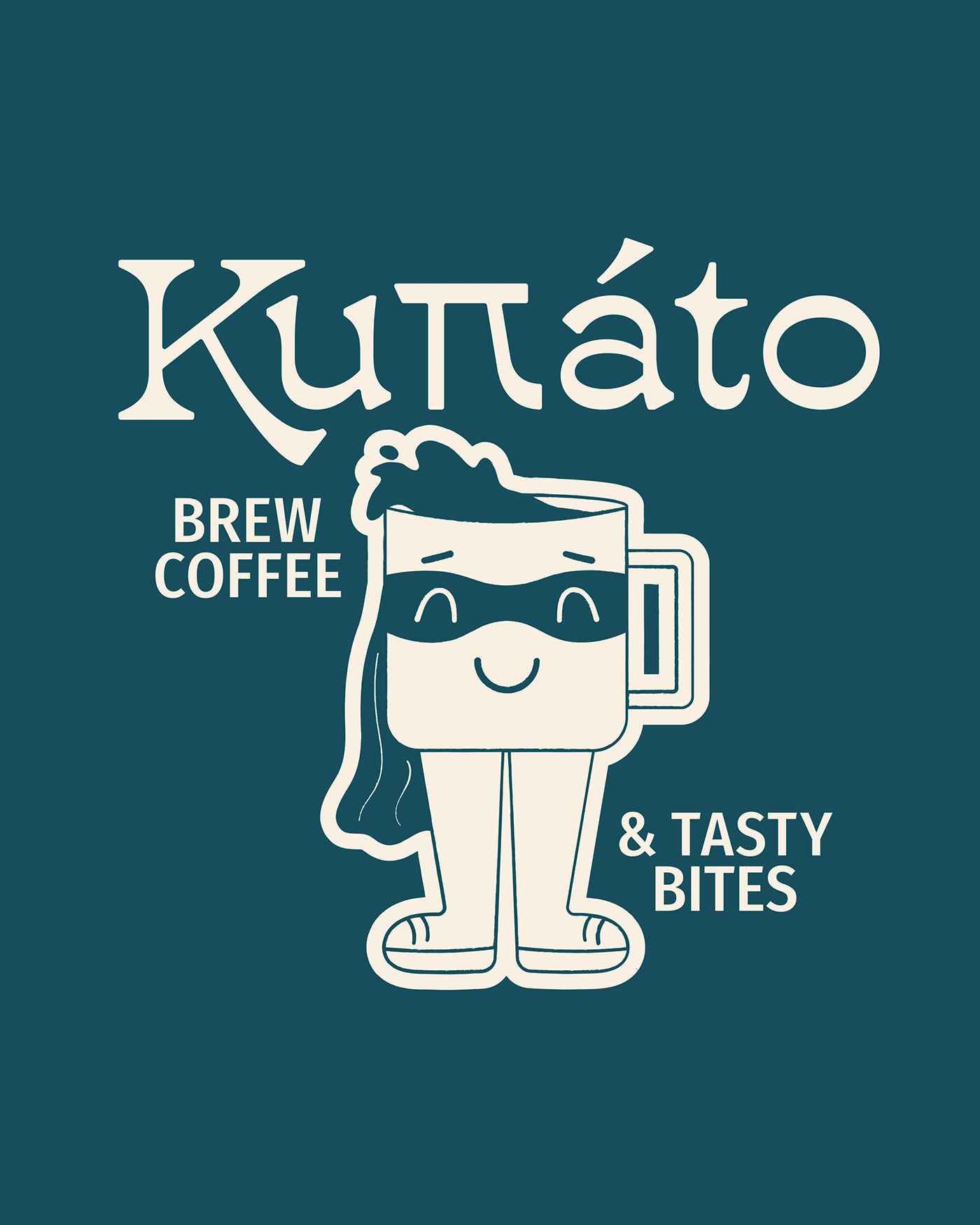 Kupato's brand identity was built around the idea of warmth, friendliness, and everyday joy. At the heart of it is a playful coffee cup mascot, designed to make you smile and feel right at home.