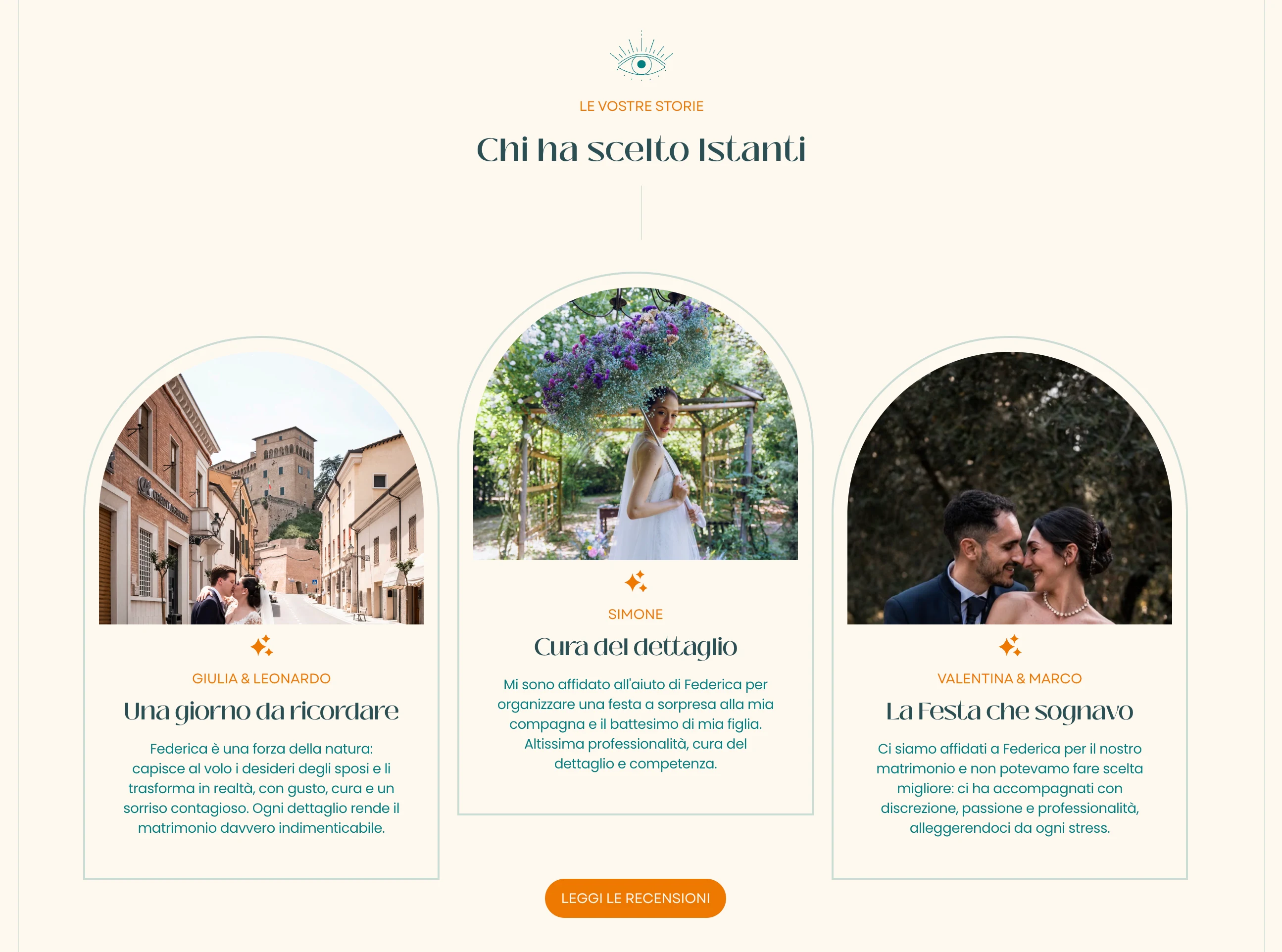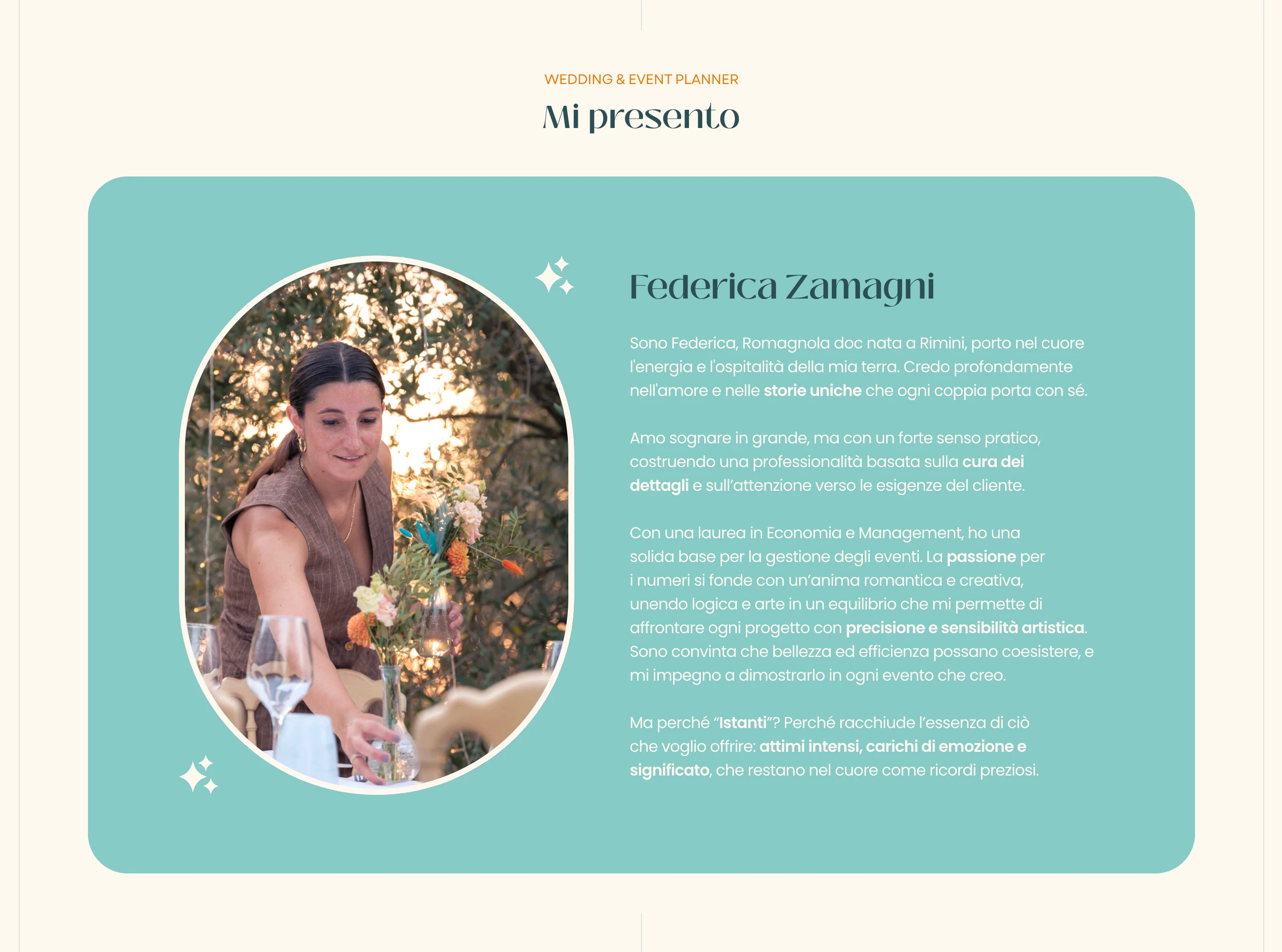 For Istanti di Eventi, a bespoke wedding and event planning service, I crafted a clean, elegant Framer landing page to reflect their emotional yet professional approach.