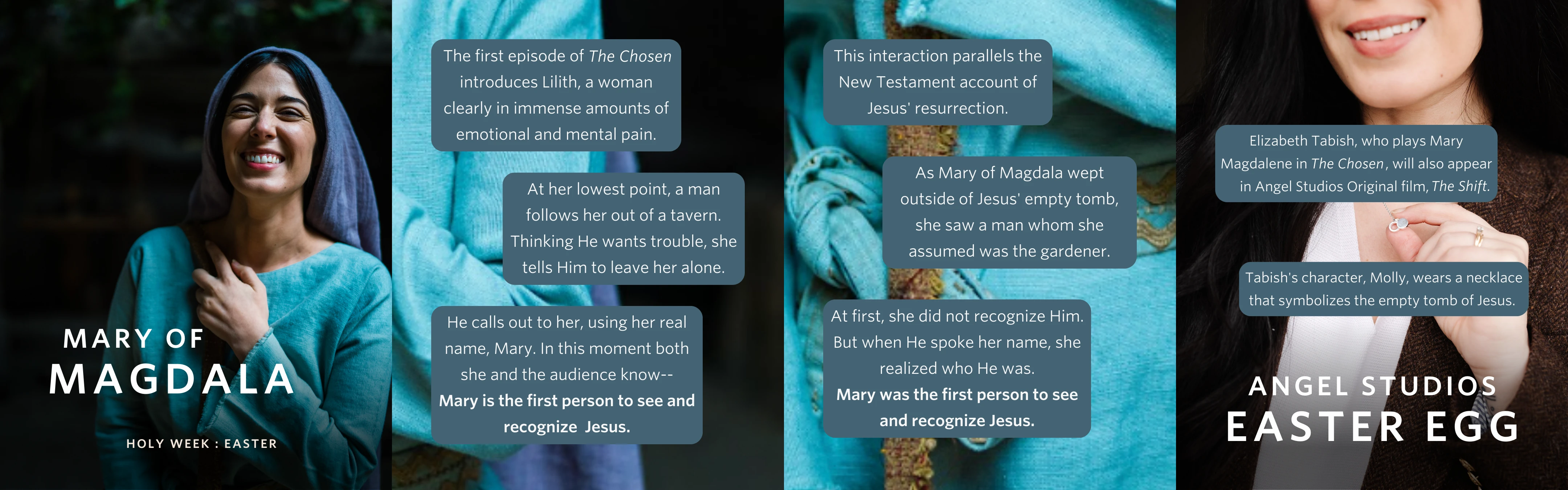 This series of Instagram carousels were posted on Angel Studio's social media accounts in preparation for a special Easter broadcast of The Chosen TV Series. Each post aims to educate about the show's historical attention to detail and pique interest in the Easter event.