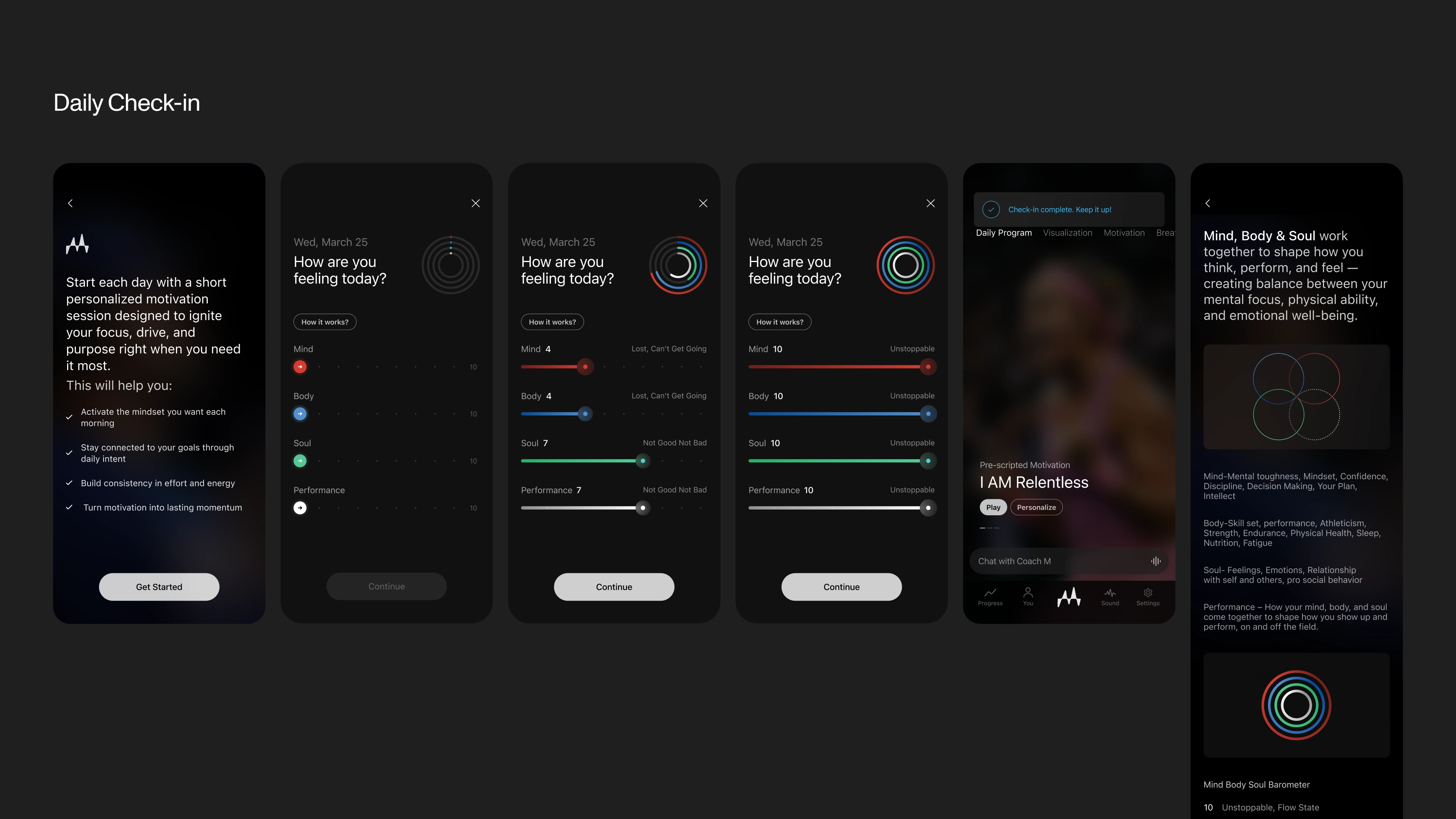 Created a daily check in flow that turns subjective feelings into a clear, trackable input with minimal cognitive load.