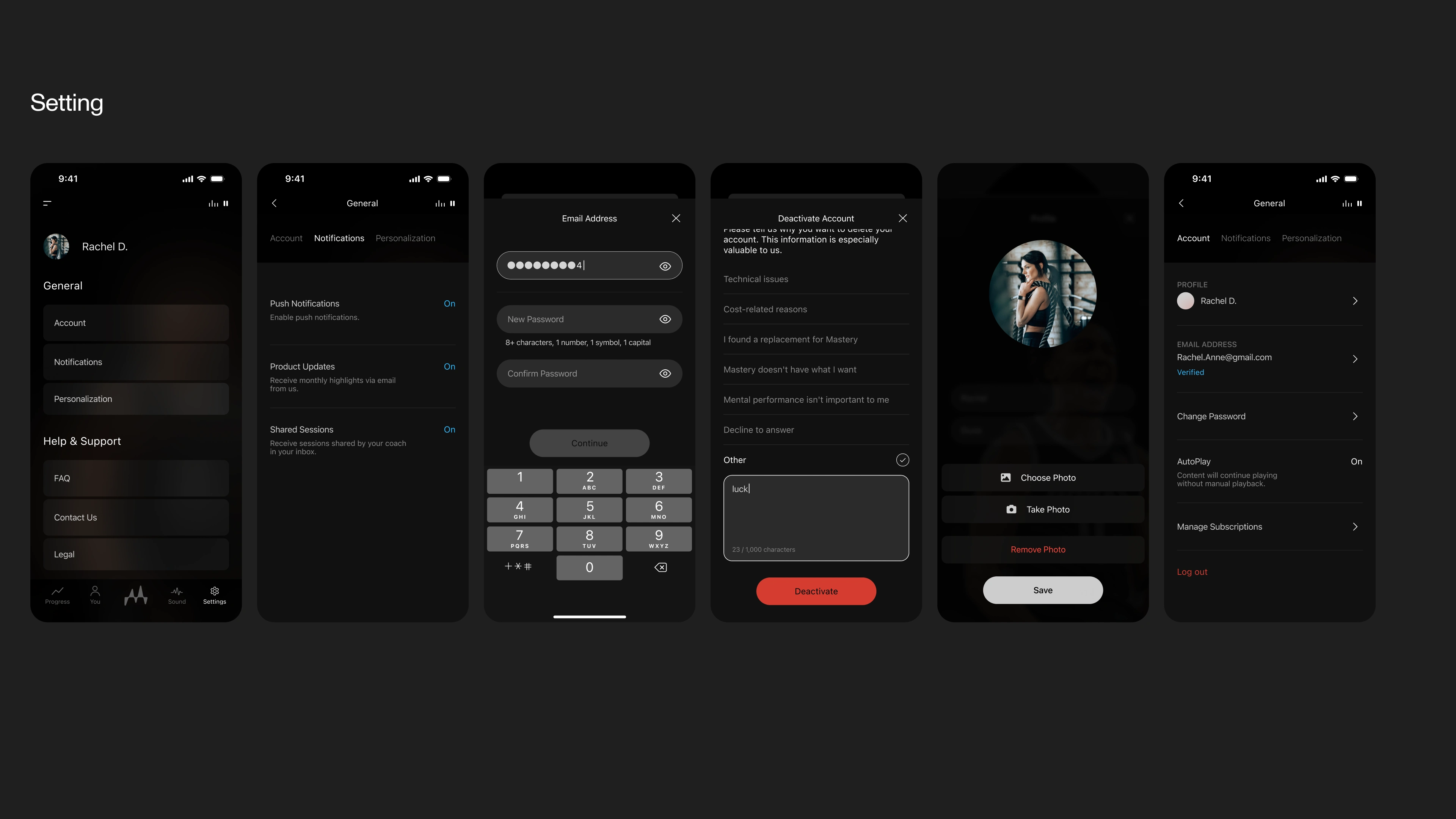 Designed a settings system with clear grouping, safe account actions, and consistent interaction patterns in dark mode.
