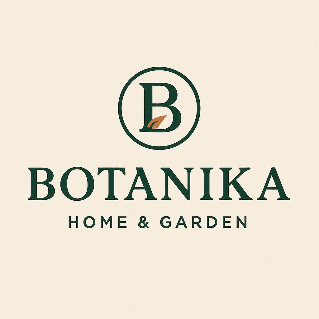 Eco‑luxury rebrand for Botanika Home & Garden: elegant evergreen palette, copper‑leaf accents, scalable B‑monogram bridging modern urban design and nature.