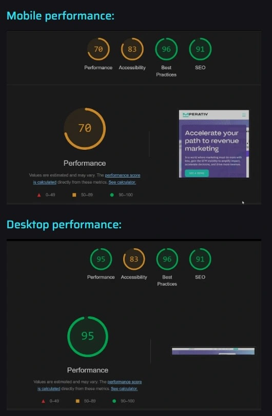 The outcome is a visually refreshed, significantly faster, and better-structured website for Mperativ.
