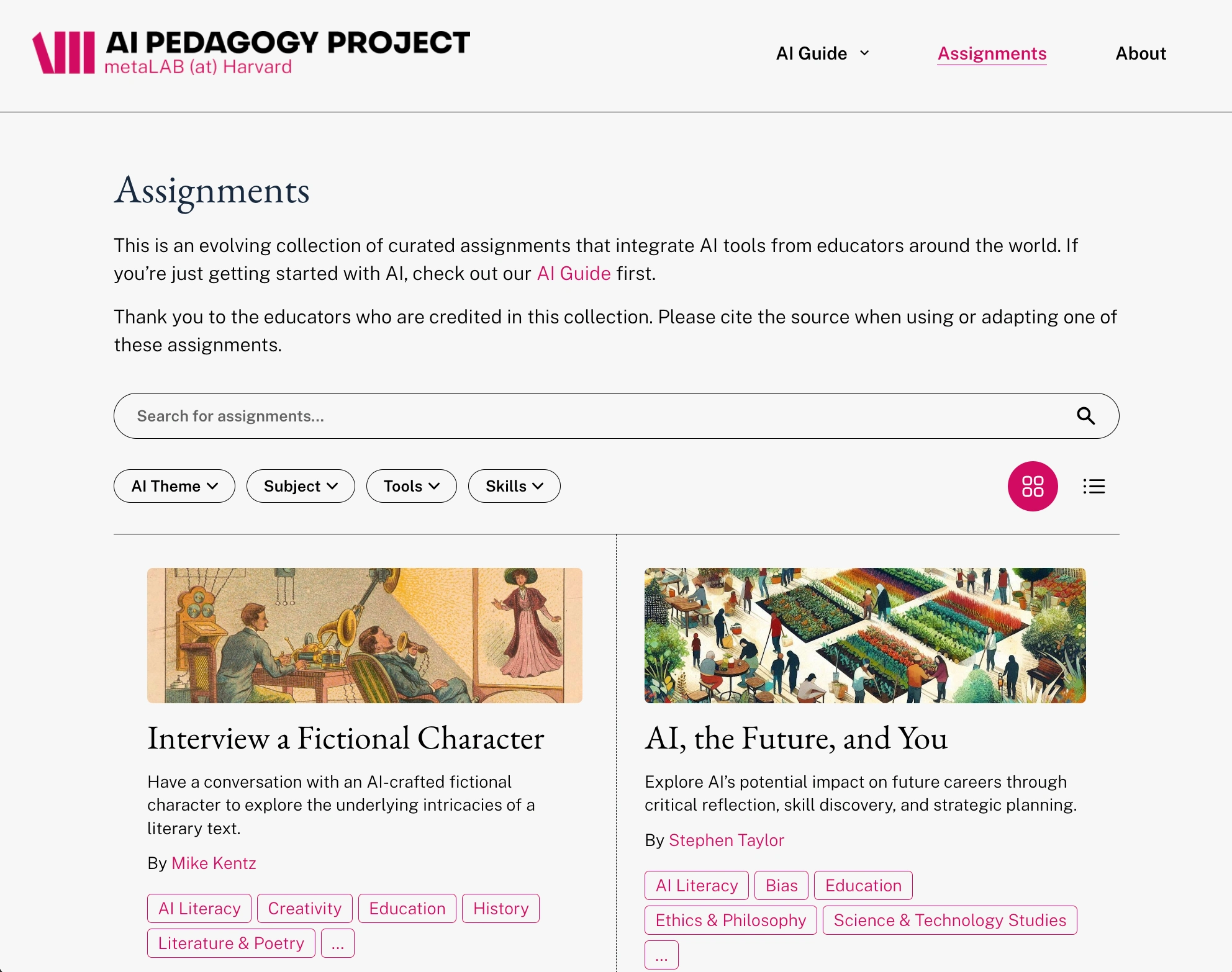 A website that enables educators to use AI in their classroom thoughtfully, using sample assignments and an AI guide