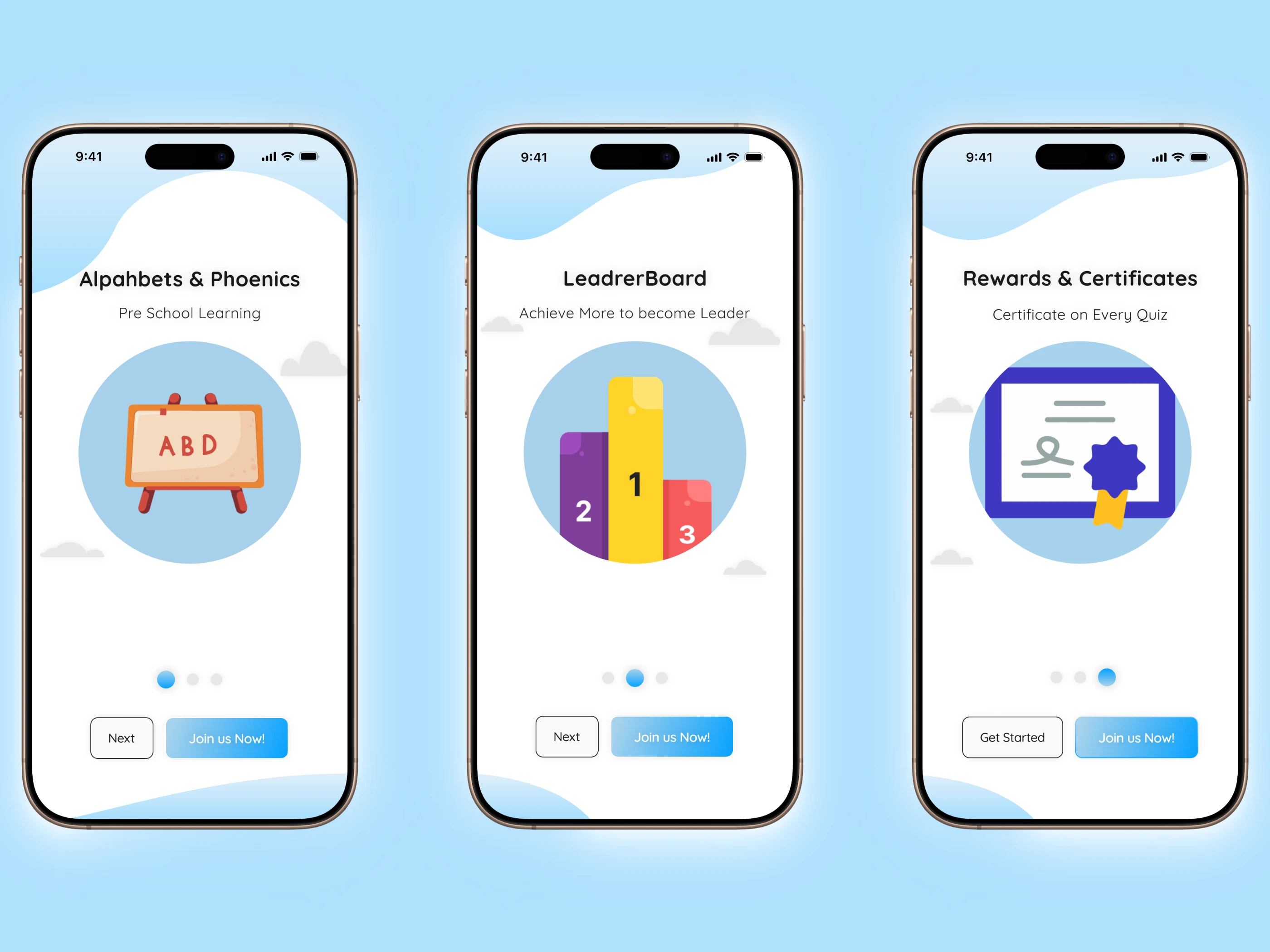 Playful onboarding UI for a Kids Learning App with bright visuals, fun illustrations, and smooth navigation to keep learning enjoyable.