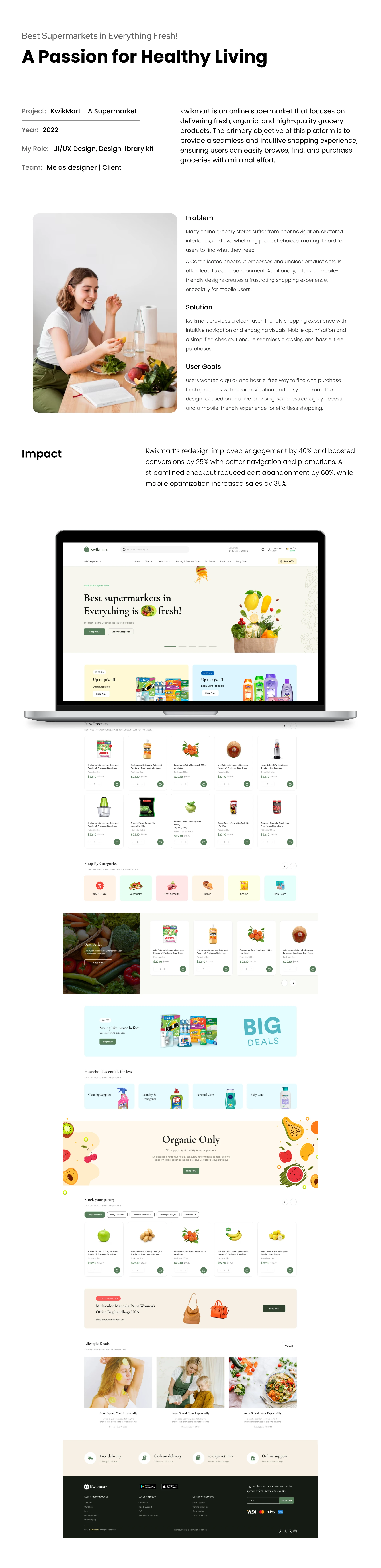 I played a key role in designing the Kwikmart website, focusing on a seamless user experience, intuitive navigation, and a visually engaging interface. My contributions enhanced product discoverability, optimized the checkout flow, and improved mobile responsiveness, leading to higher user engagement and increased conversions.