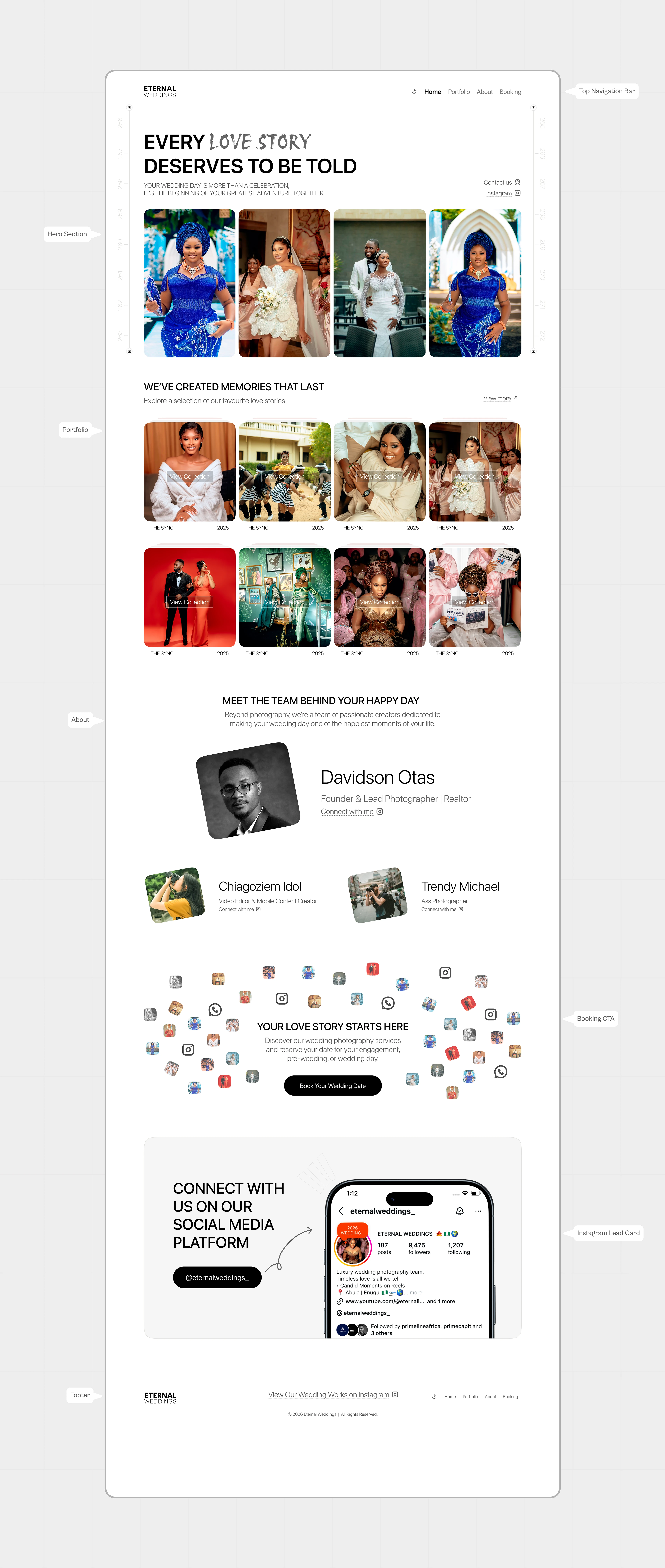 A premium portfolio and booking website designed for Eternal Weddings — a luxury wedding photography brand delivering end-to-end event coverage.The experience …