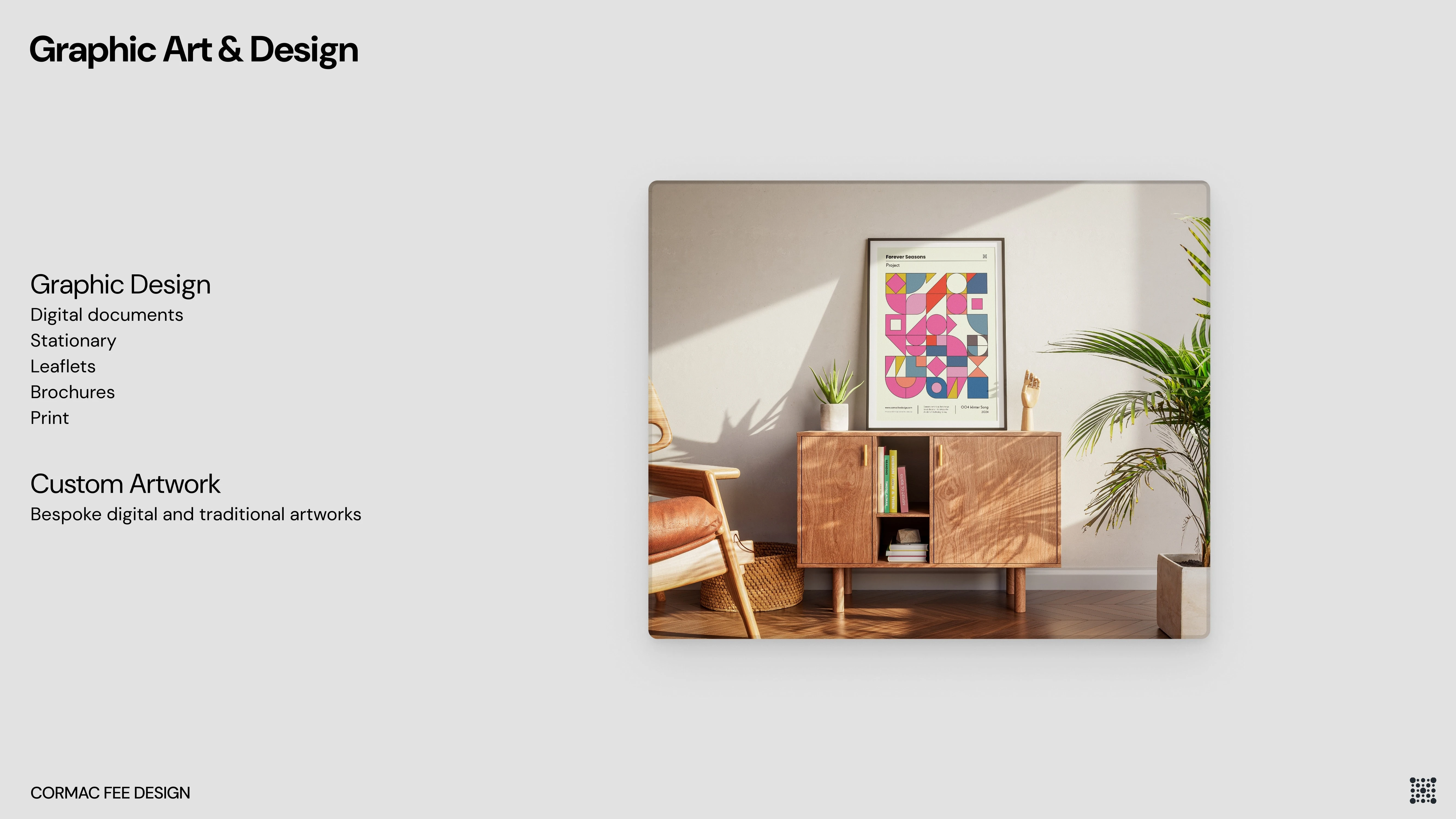 This is a presentation/ booklet document giving information on my services. The booklet itself also stands as an example of my graphic work and document design.