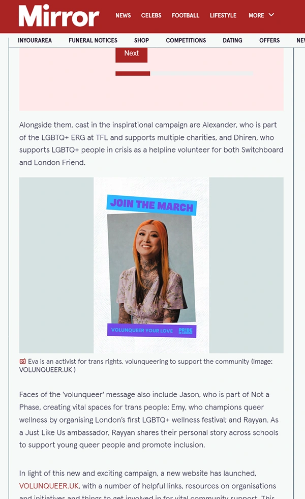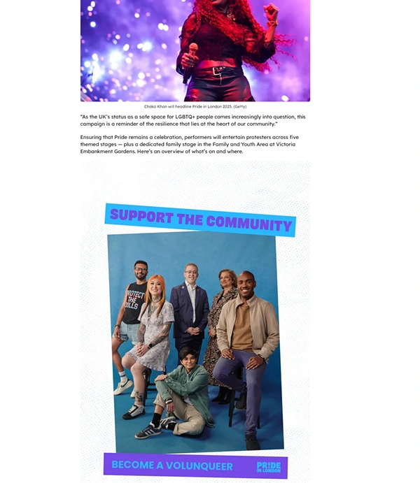 Retouching project for a campaign for Volunqueers, during pride in London, taking place on the 5th of July 2025.