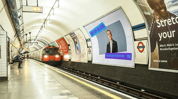 The images appeared on the press, in outdoor adevertising, and on the very prominent giant digital billboard on Trafalgar square.