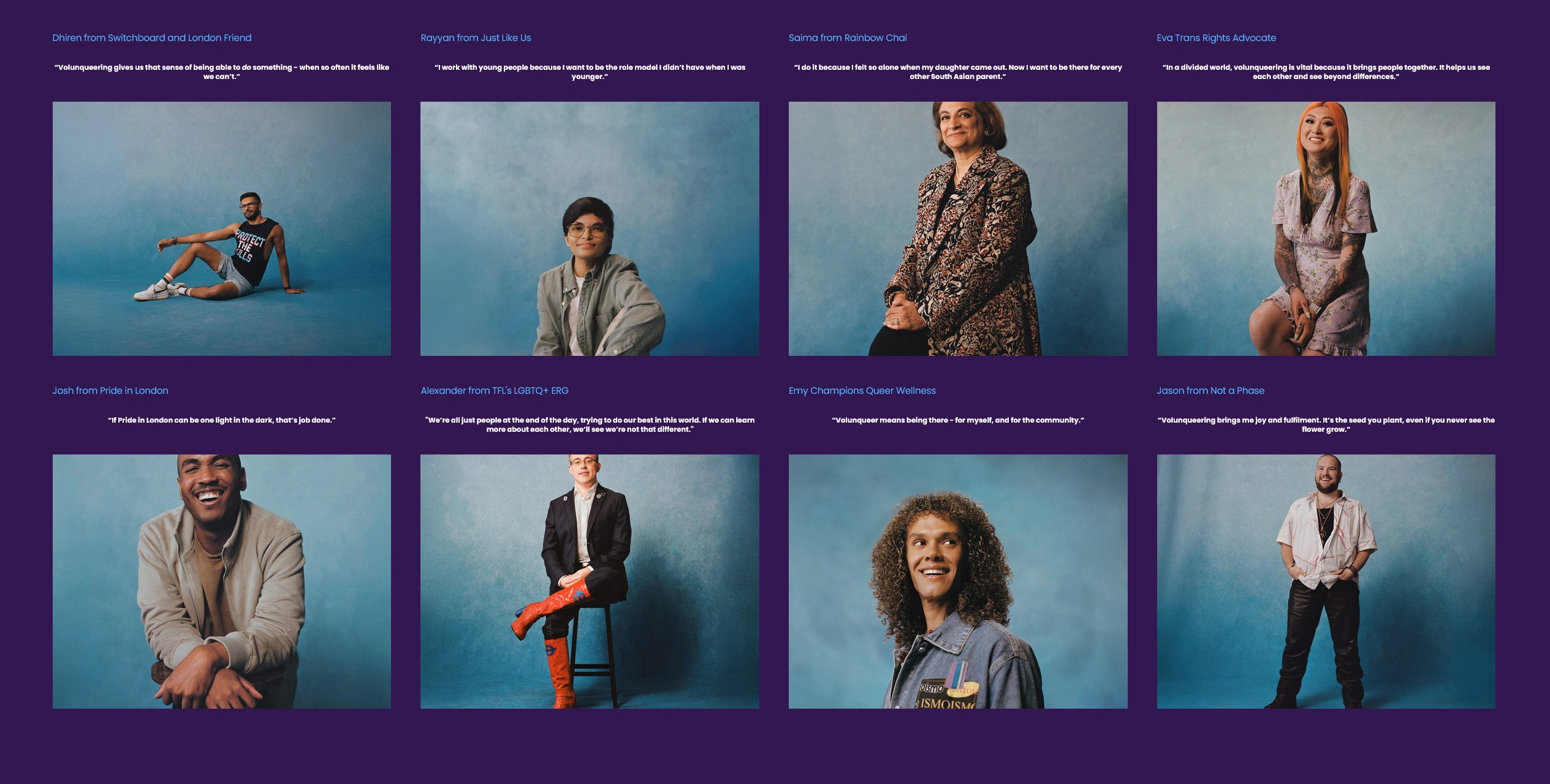 Jessica Eliza also shot a series of videos that appeared on social media, and on Volunqueer's own website.