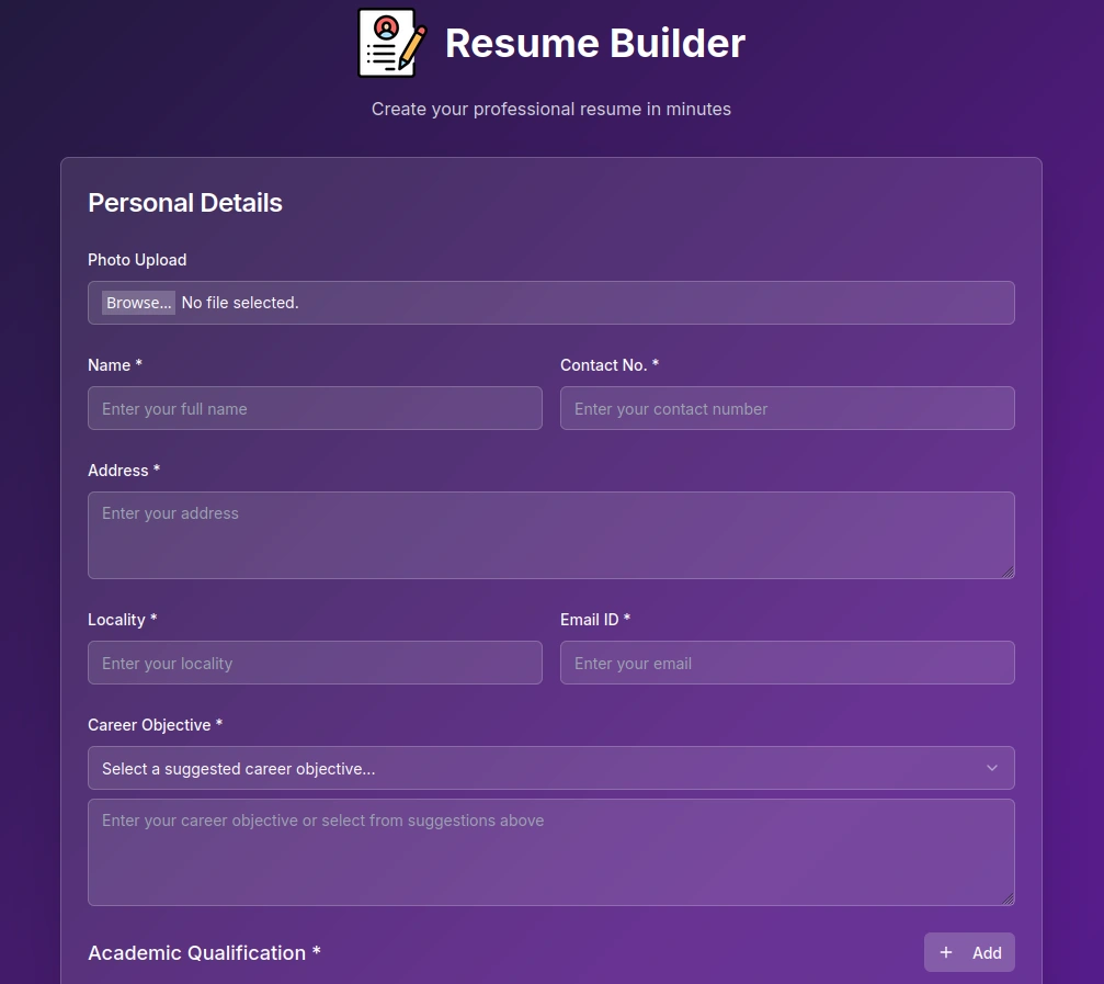Key Features: ā Intuitive interface to input personal info, work history, education, skills, and more ā Multiple customizable resume templates (fonts, colors, section order) ā Realātime preview updates as users type their details ā Built with Next.js + Tailwind CSS for smooth, responsive performance ā Lightning-fast and optimized for both desktop and mobile browsers ā Visual polish and iconography crafted using Canva