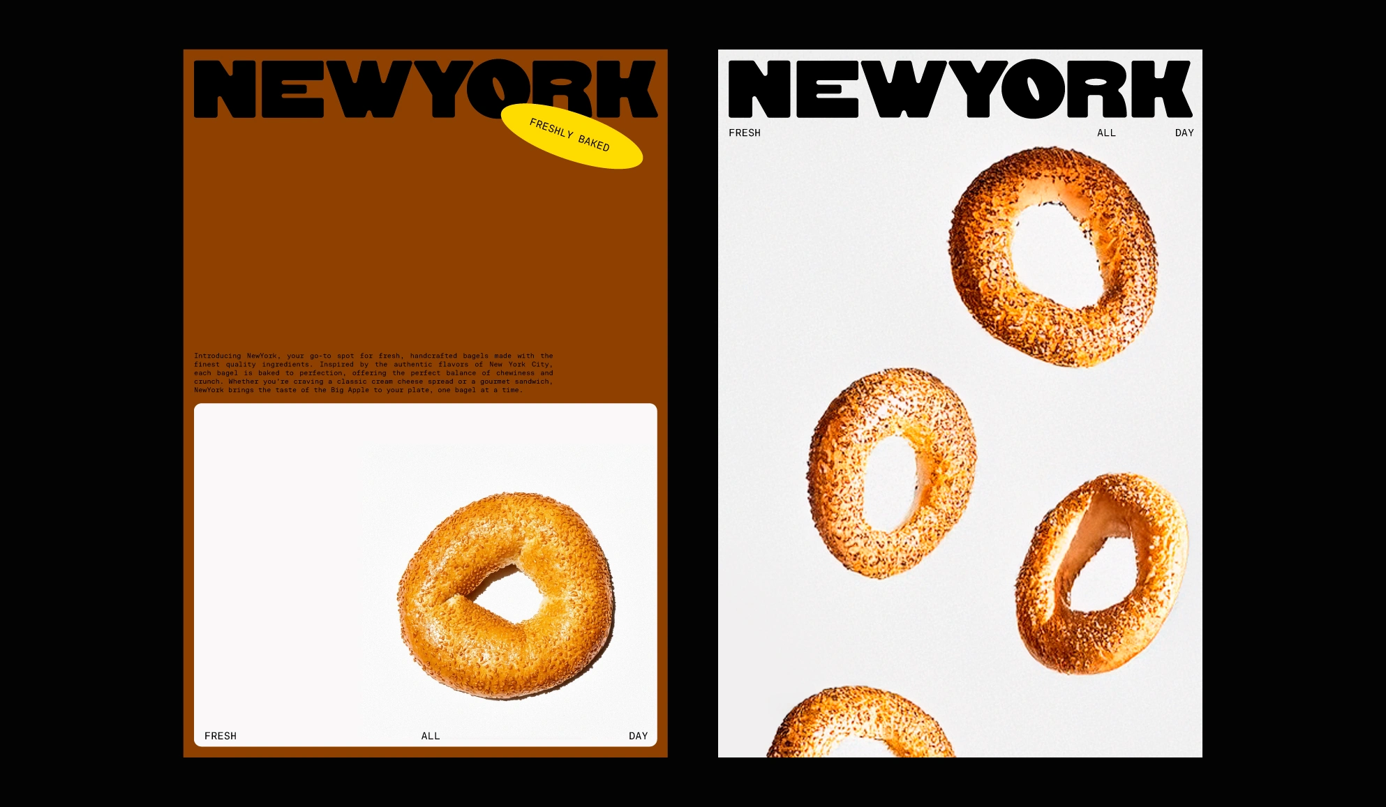 The project aims to create a brand that embodies the authenticity and exquisite flavor of freshly baked New York-style bagels. Made with premium ingredients, these bagels strike a perfect balance between artisanal craftsmanship and urban charm. Targeting food enthusiasts who cherish both tradition and innovation, the brand aspires to become the preferred destination for bagel lovers, whether for a quick morning bite or a relaxed brunch. The objective is to develop a visual identity that exudes freshness, timelessness, and a distinctively New York vibe.