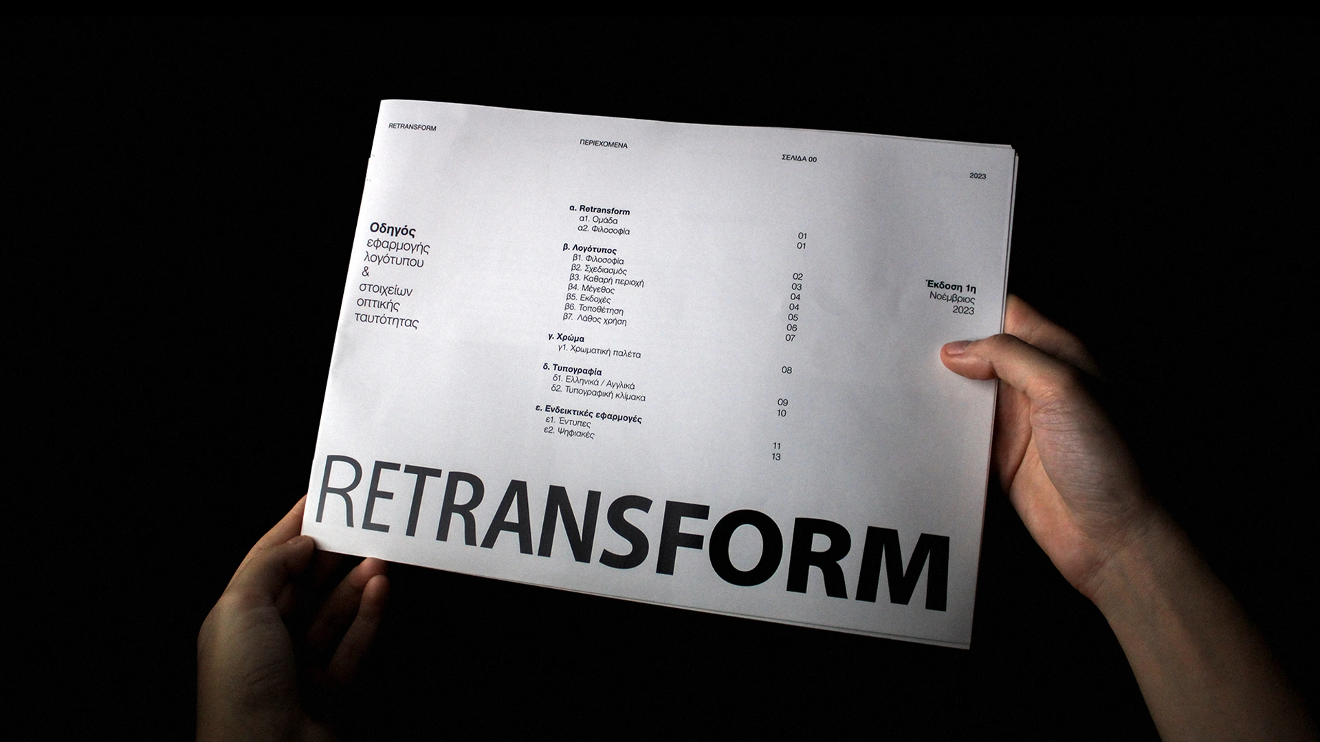 Established in 2023 by the performer and artist Magdalena Papanikolopoulou, Retransform is a contemporary art group fueled by the love and need for expression through performance art. The name, derived from the combination of the prefix re- and the word transform, reflecting the condition of perpetual transformation. The team collectively embraces this notion as it is inextricably linked to the performance art. The logotype employs a rhythmic typographic interplay, visualizing the essence of re-transformation. Embracing the principle of movement, the design dynamically captures the sensation of a changing state, thus conveying both flux and continuity. This typographic approach stands as a visual parallelism to the captivating life cycle of a butterfly, mirroring the metamorphosis inherent in Retransform’s philosophy.