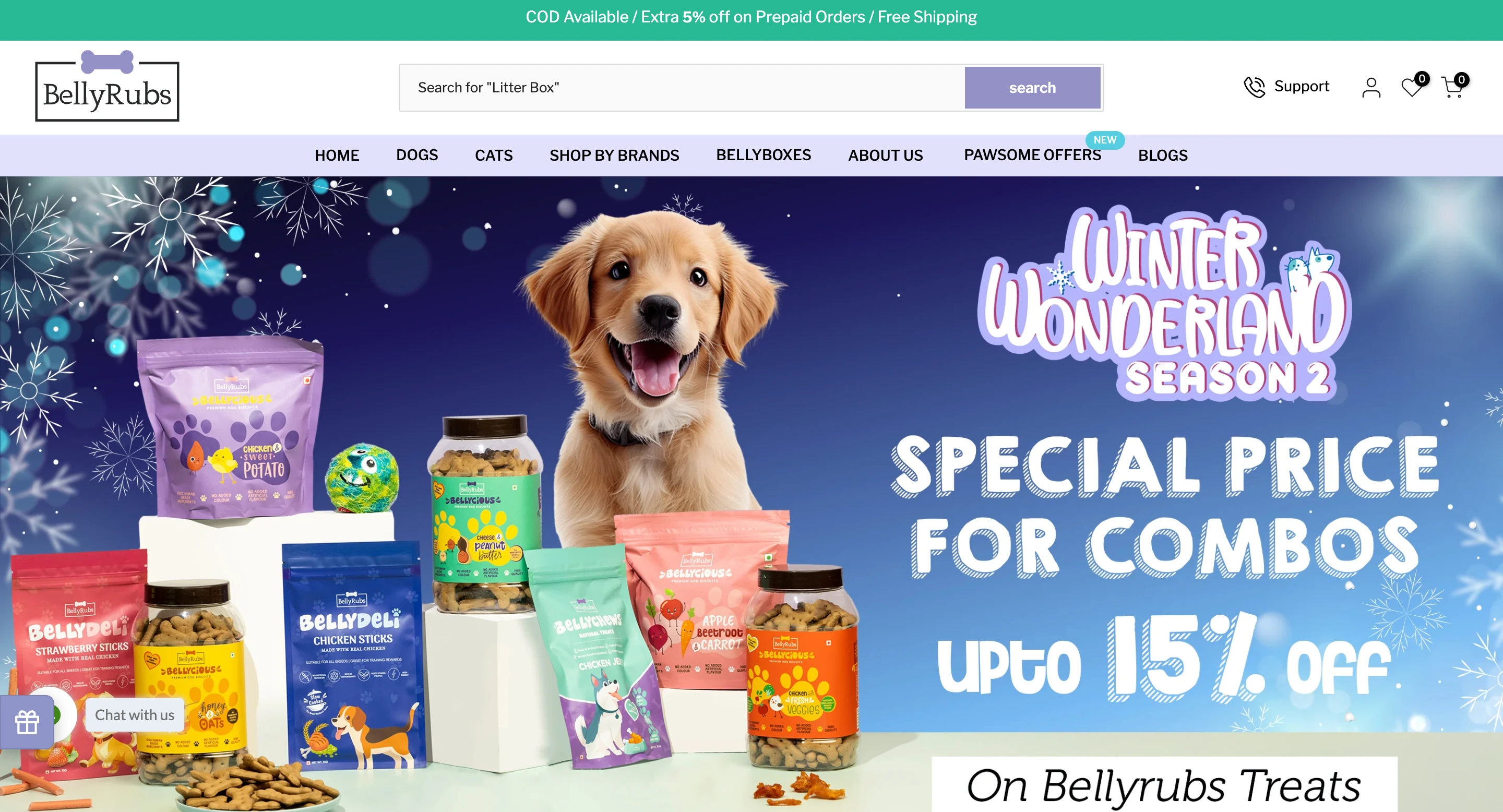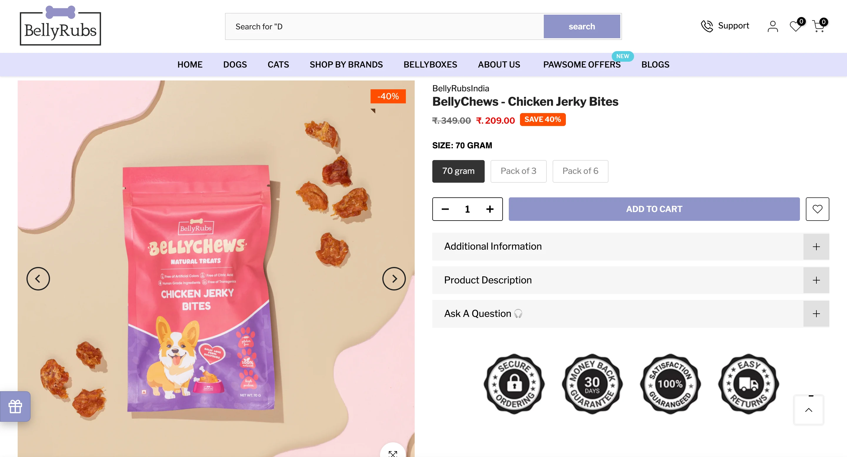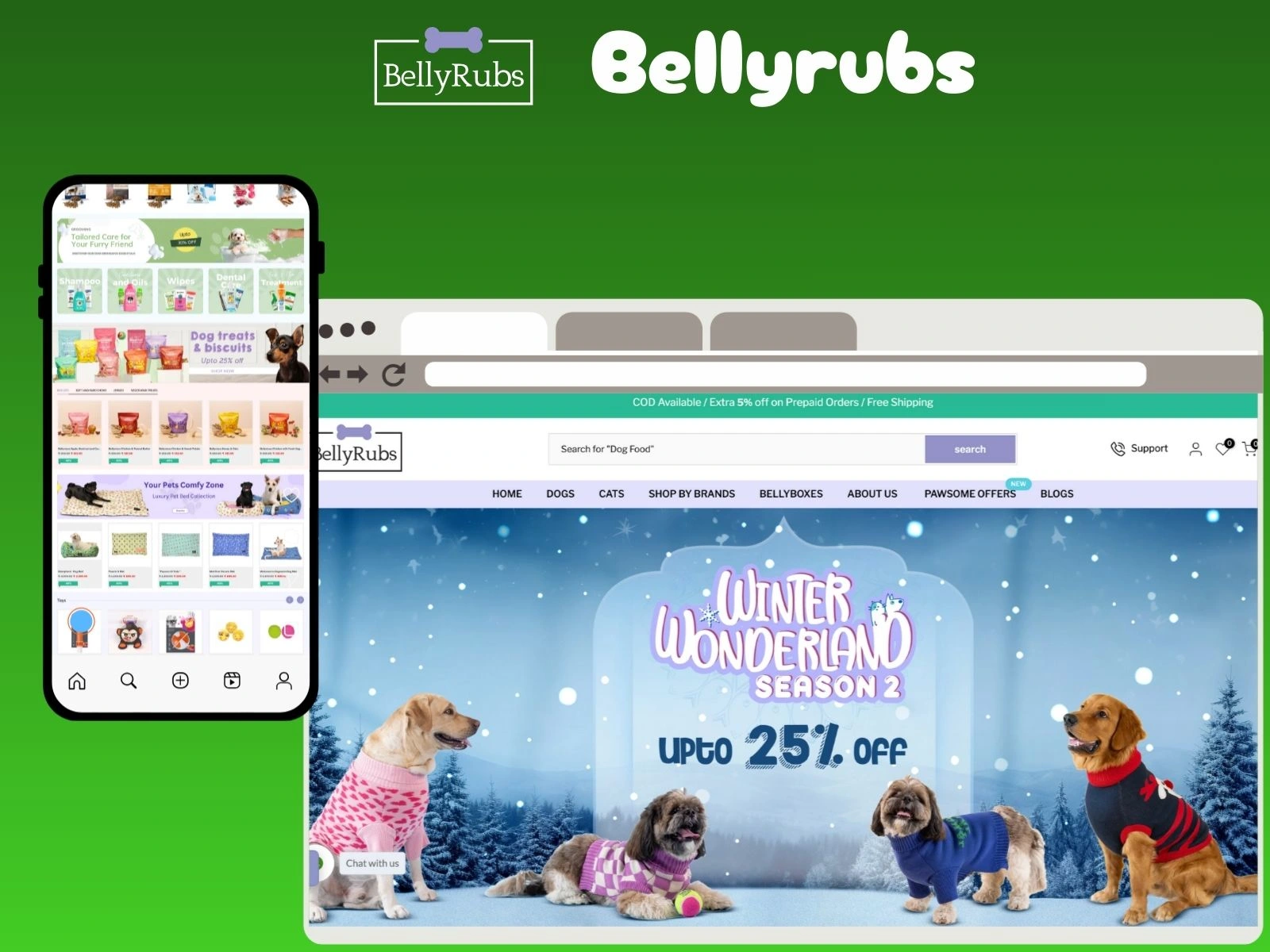 I designed and developed the Shopify storefront for Bellyrubs โ a pet-nutrition brand focused on safe, natural products for dogs.
