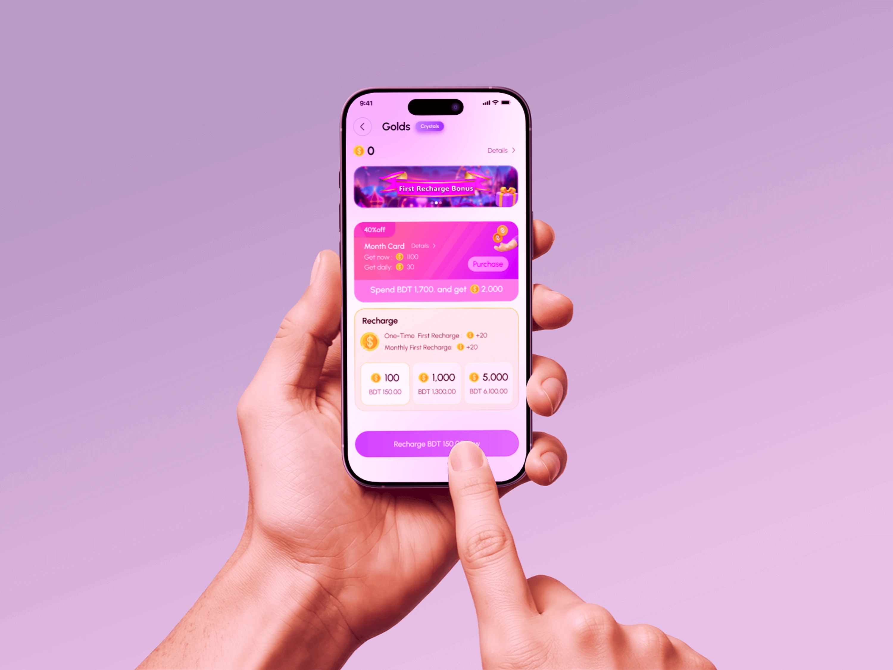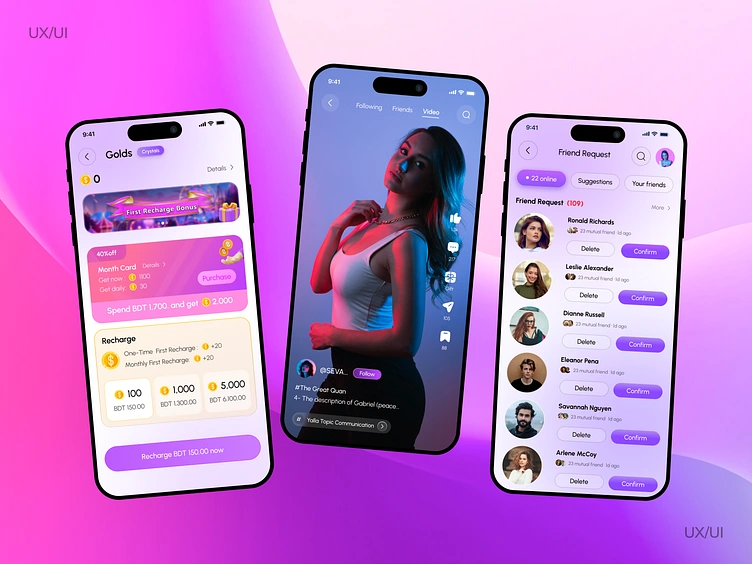From a stunning profile screen with dynamic media to a clean and functional friend request interface and an engaging gold recharge system, every element is crafted for an intuitive and modern user experience.