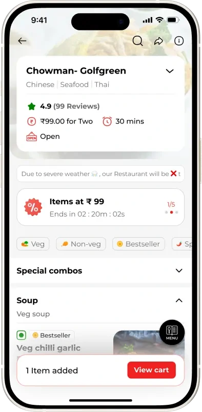 Chowman is the brainchild of musician-turned-entrepreneur Debaditya Chaudhury. One will enjoy dining from its delectable offerings: Chinese, Seafood, Cantonese, Asian, and Thai. Great, fresh meals are prepared every hour with offers that are too good to miss, not to mention the real-time order tracking facility. Experience the true taste of China today!